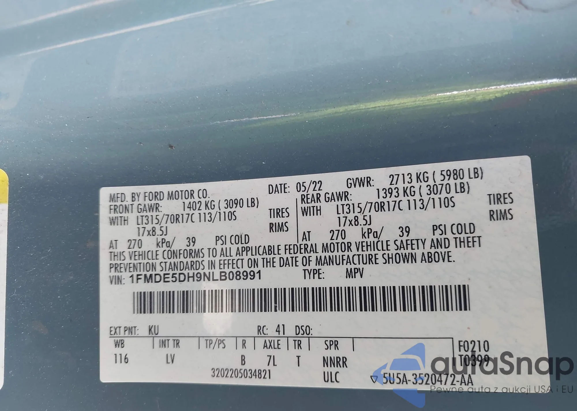 • VIN 1FMDE5DH9NLB08991