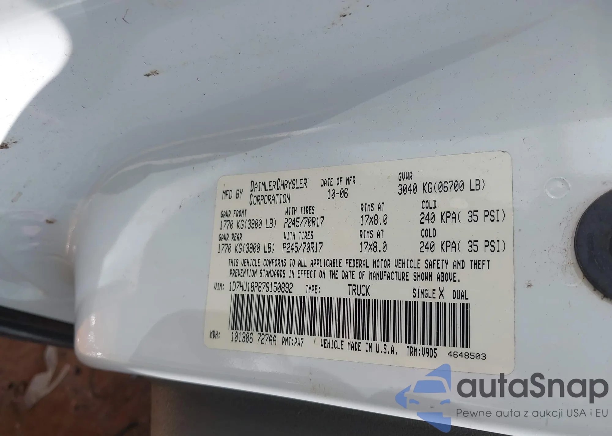 LOT: 42988572 VIN: 1D7HU18P67S150892