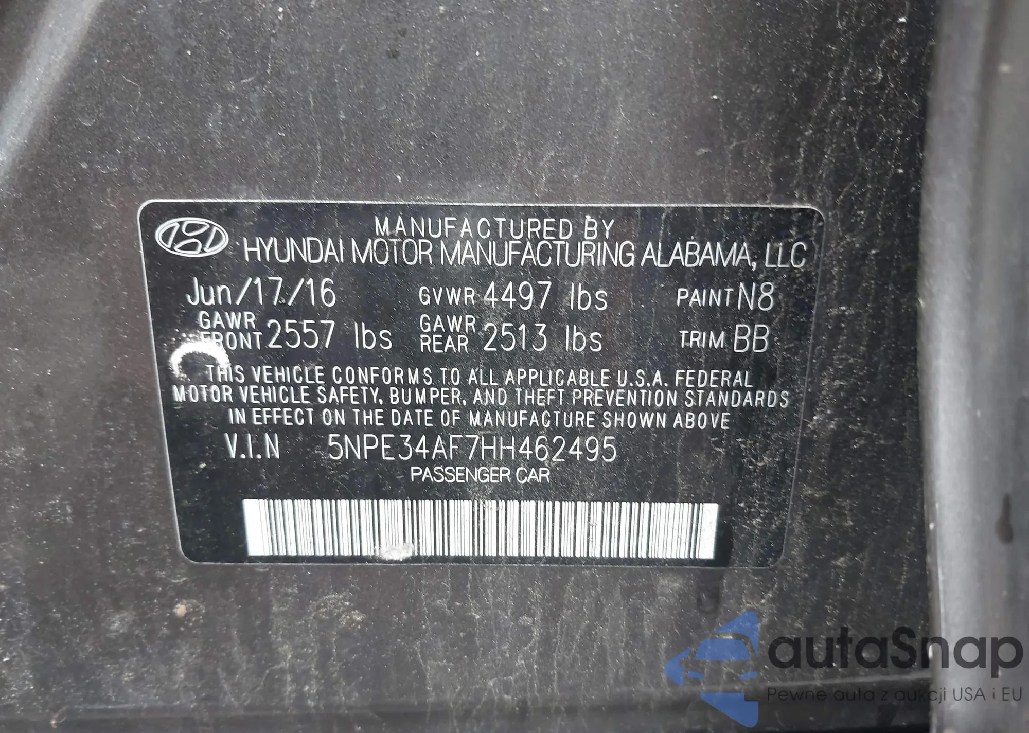 • VIN 5NPE34AF7HH462495