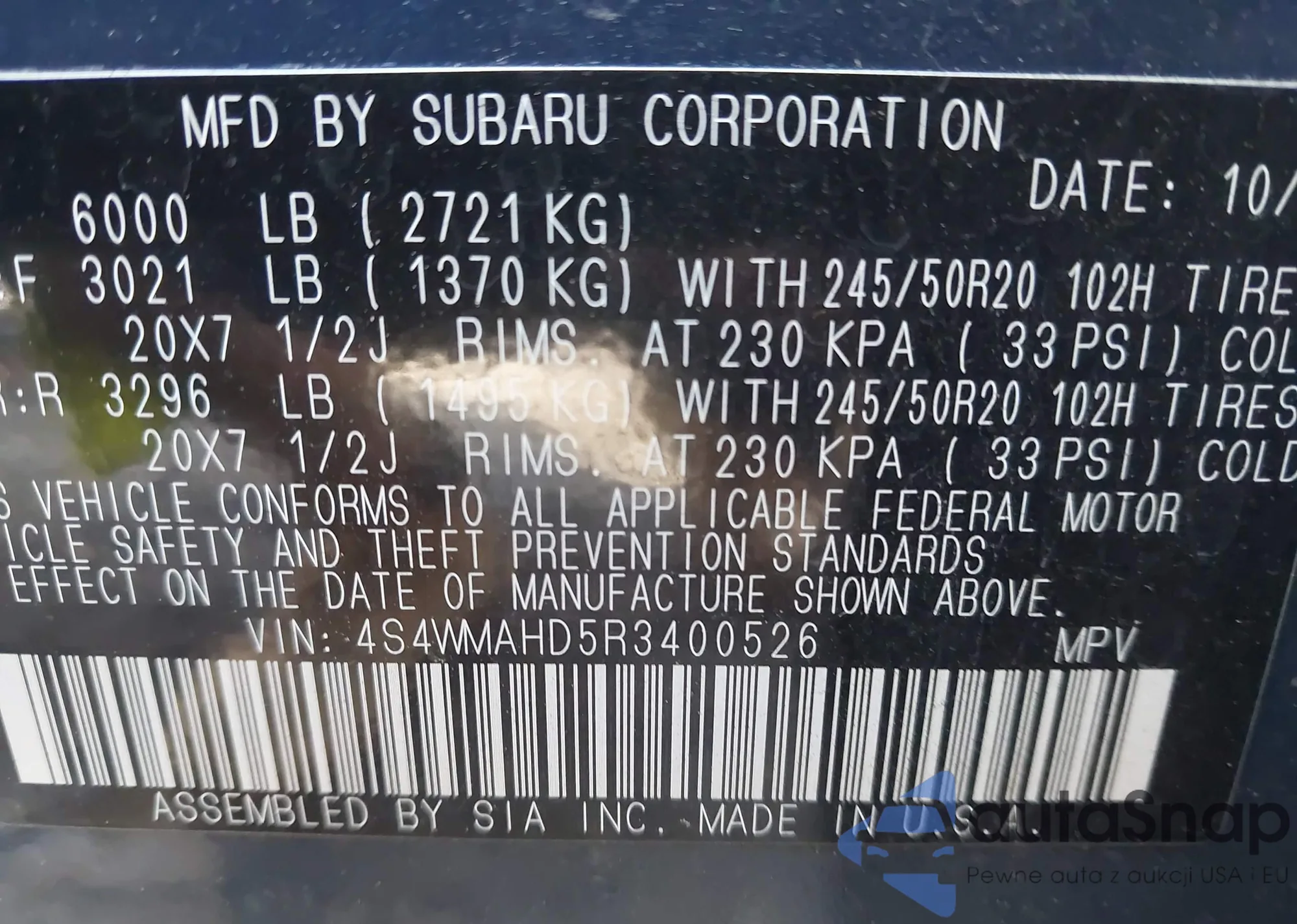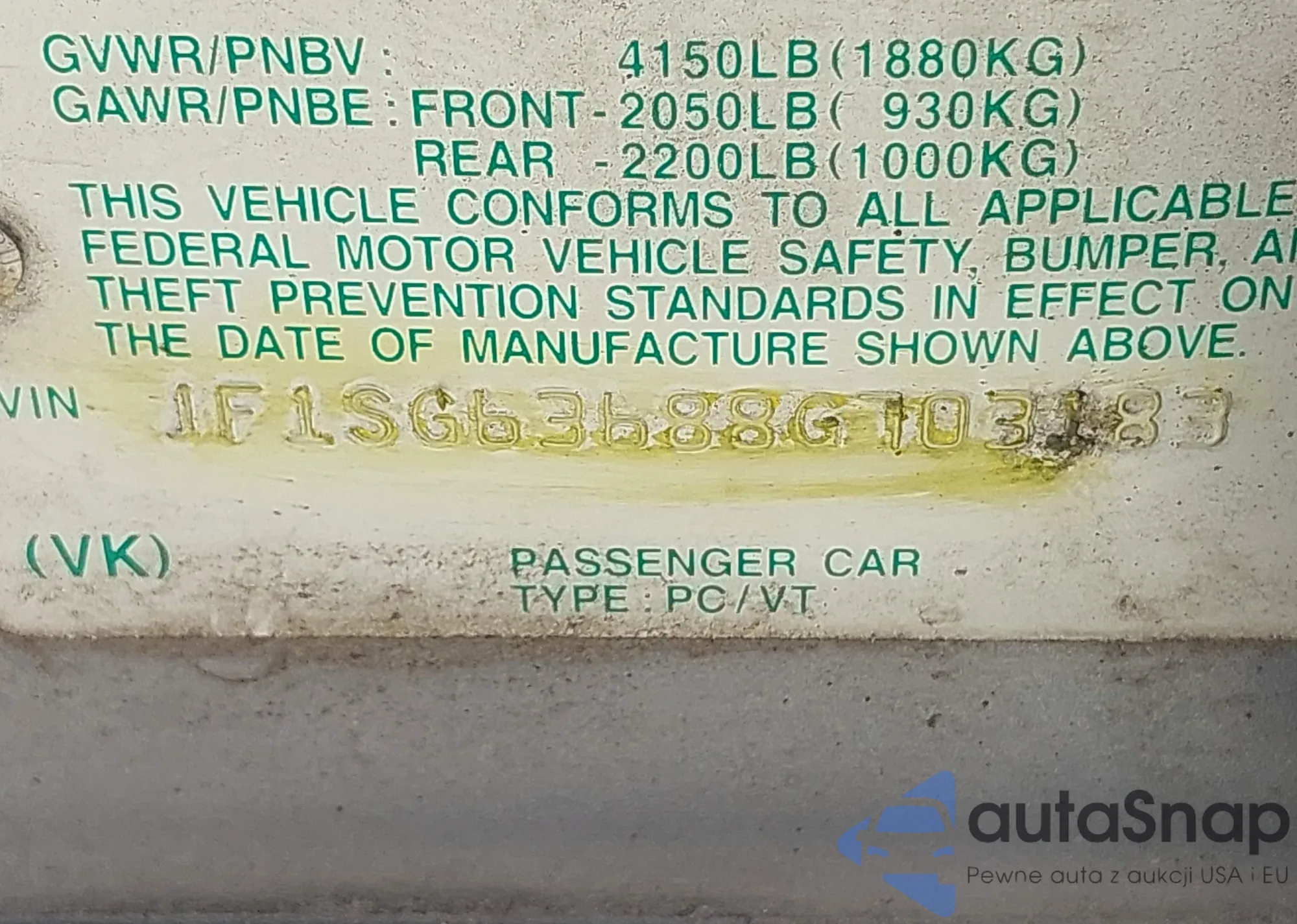 LOT: 42936190 VIN: JF1SG63688G703183