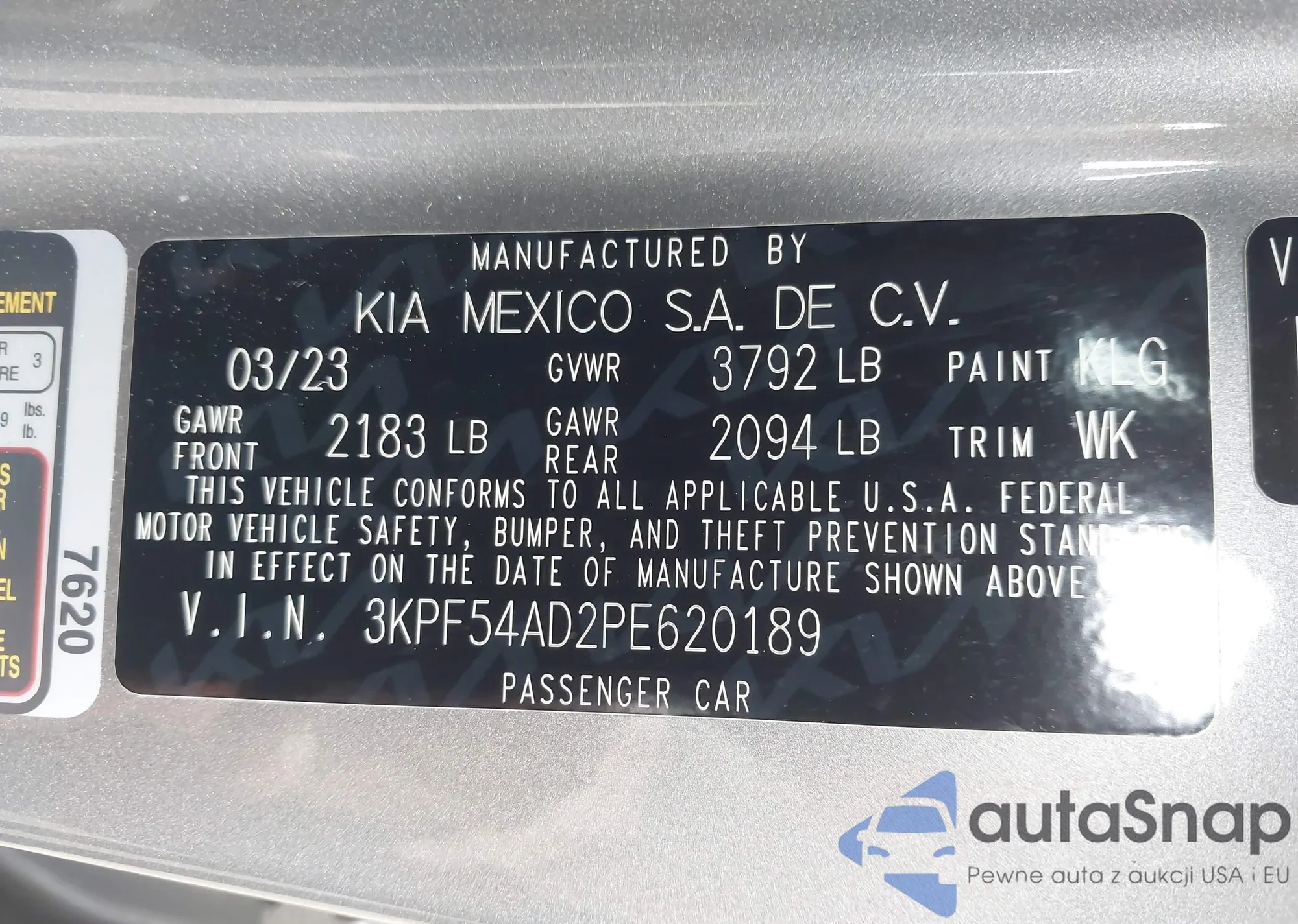 LOT: 42422508 VIN: 3KPF54AD2PE620189