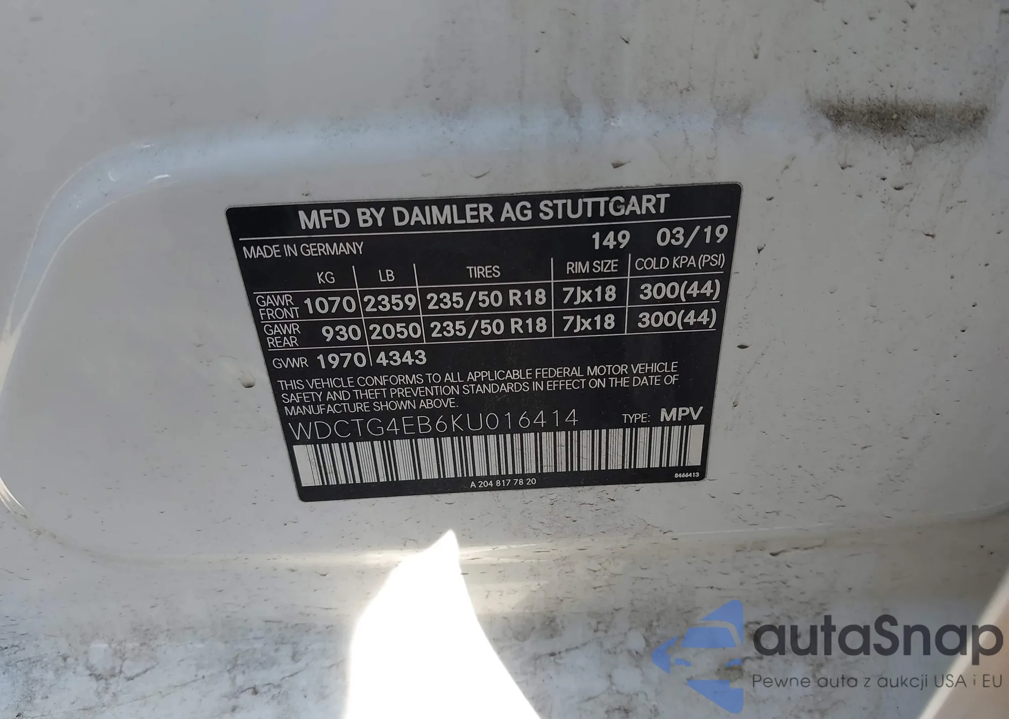 • VIN WDCTG4EB6KU016414