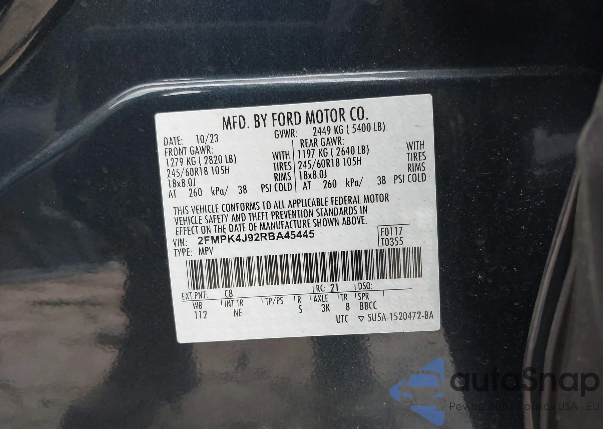 • VIN 5TFMU4FN5BX003213
