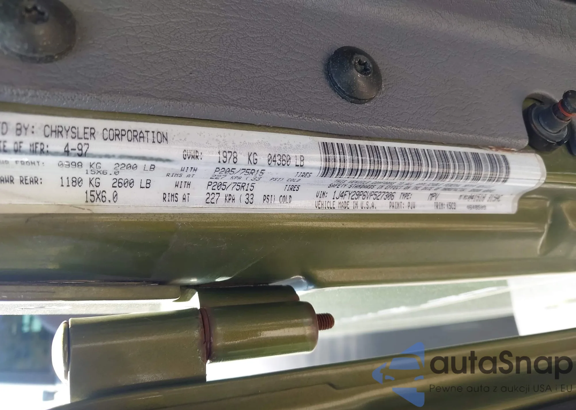 LOT: 43089152 VIN: 1J4FY29P6VP527306