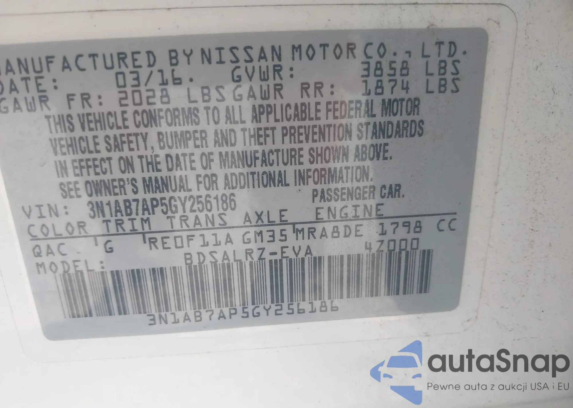 • VIN 3N1AB7AP5GY256186