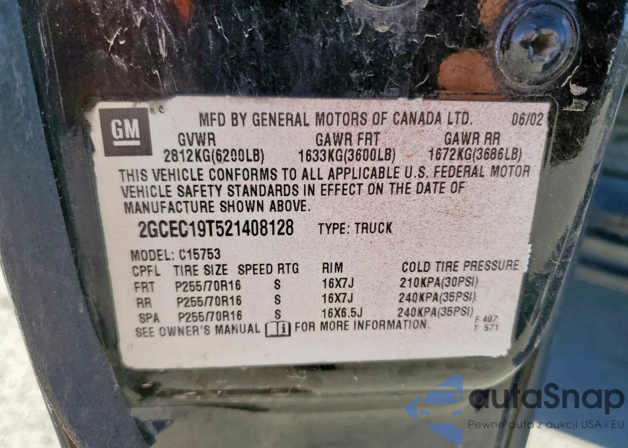 • VIN 2GCEC19T521408128