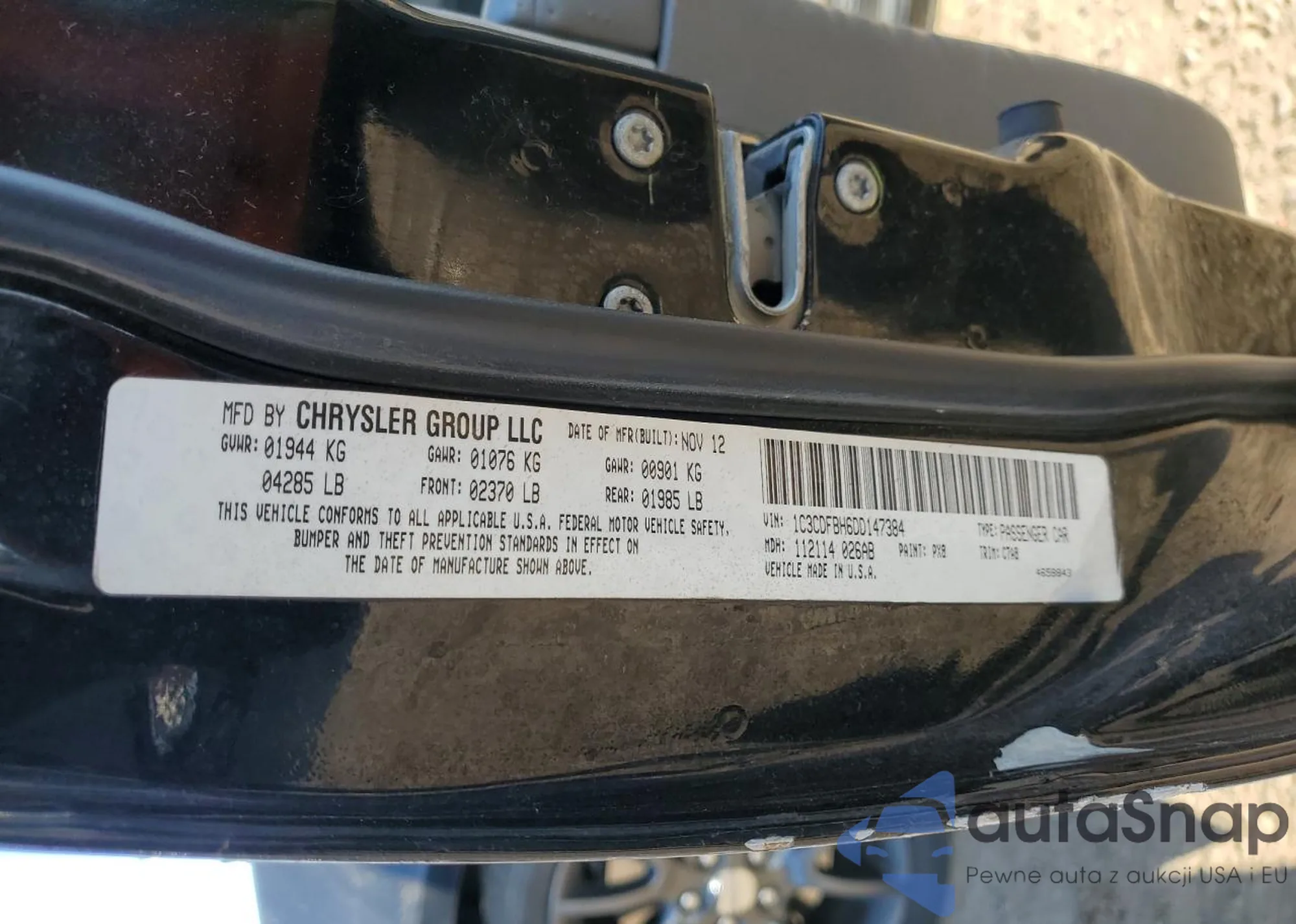 • VIN 1C3CDFBH6DD147384