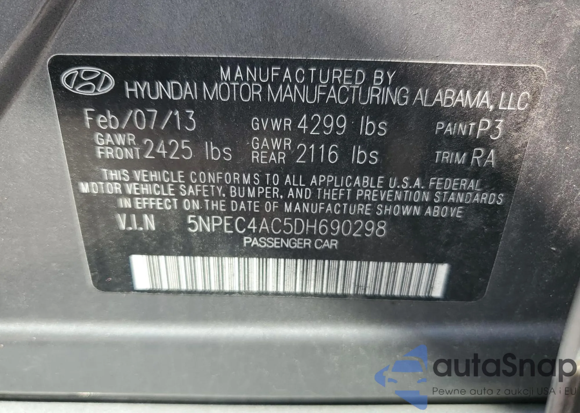 LOT: 68942515 VIN: KMHD84LF6HU427135