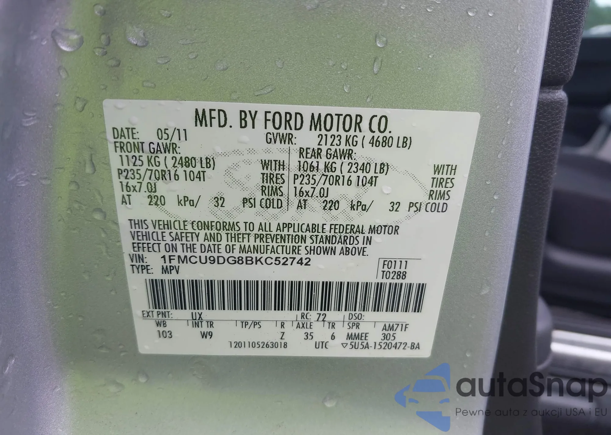 • VIN 1FMCU9DG8BKC52742