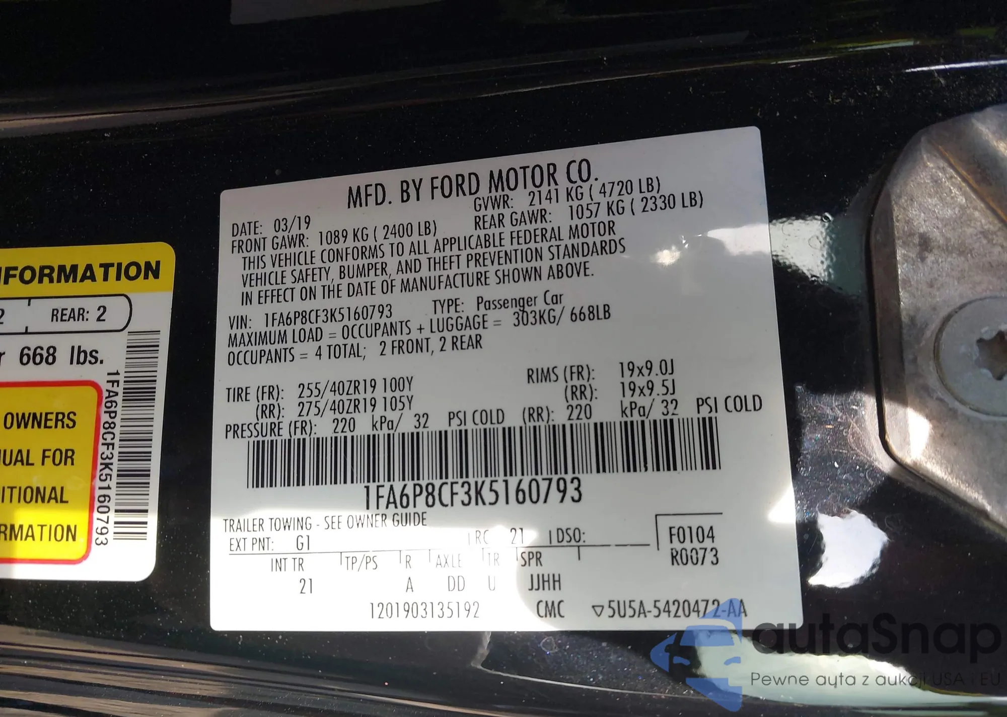 LOT: 42899777 VIN: 3FADP4EJ6KM111616