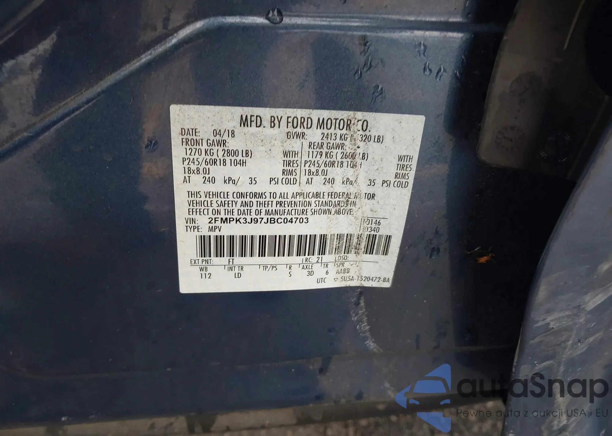 LOT: 42853949 VIN: 2FMPK3J97JBC04703