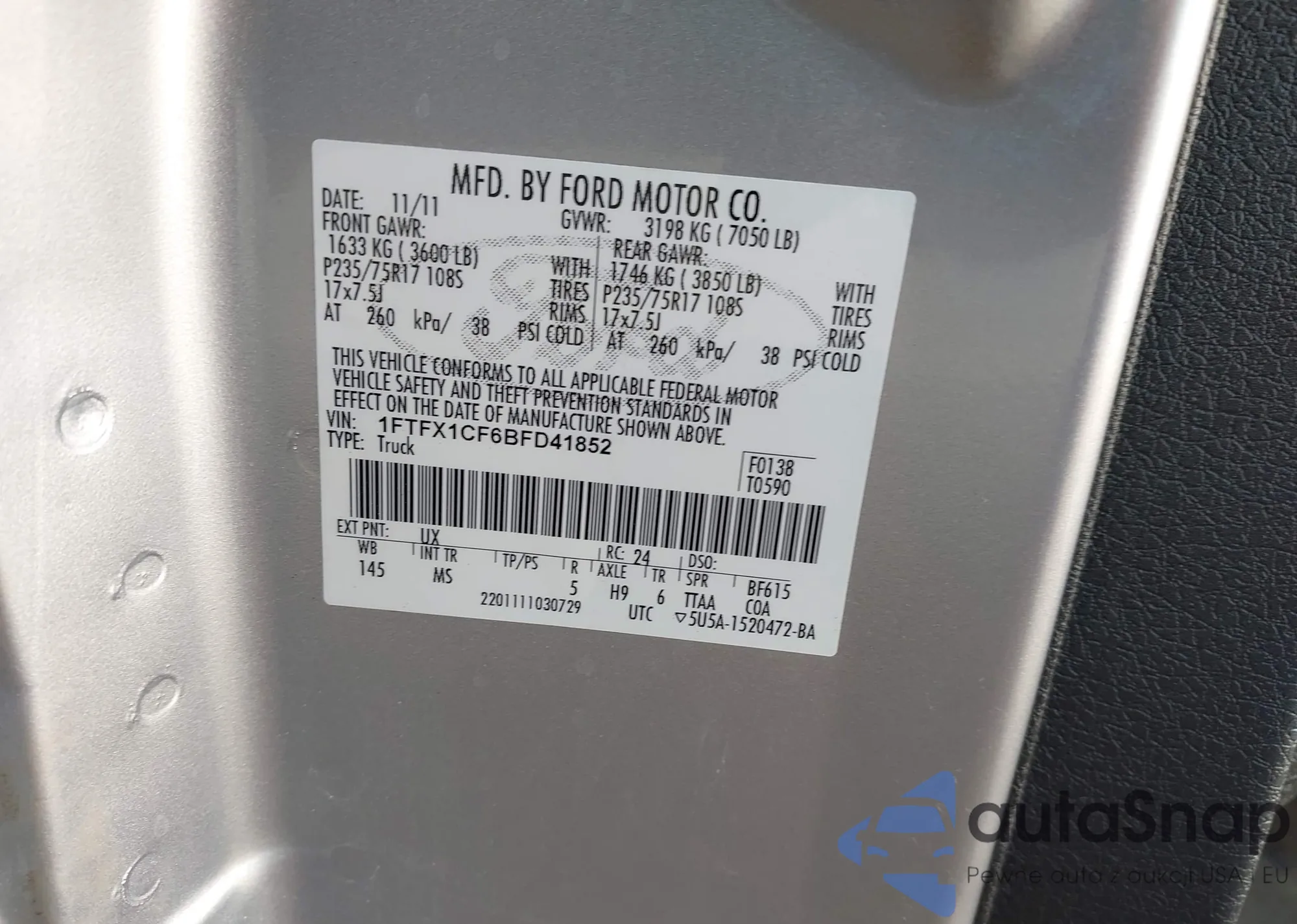 • VIN 1FTEW1EF6FFB03341