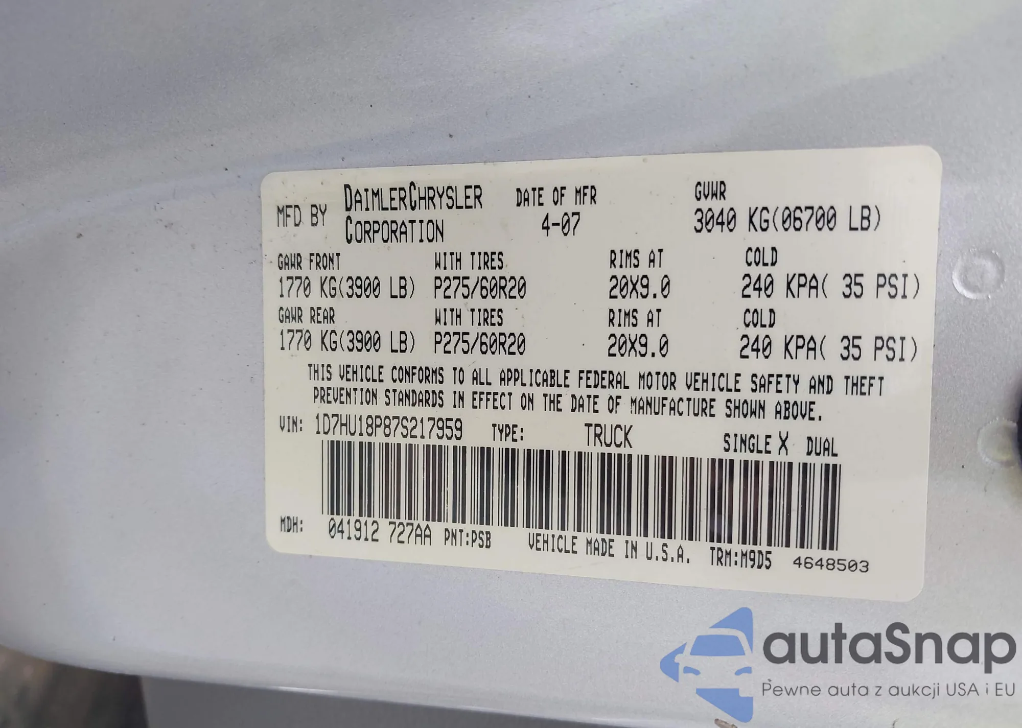 • VIN 1D7HU18P87S217959