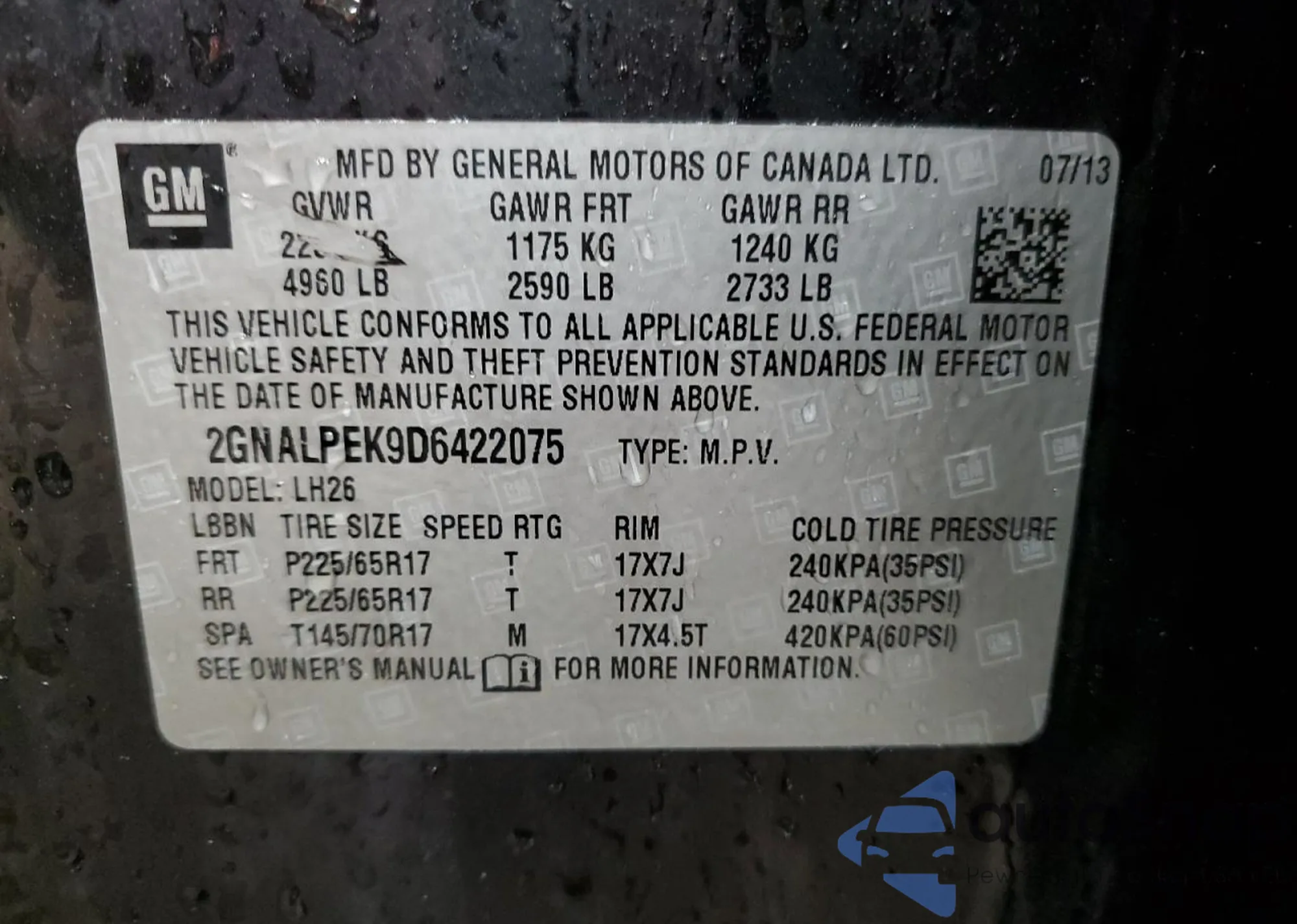 LOT: 69957445 VIN: 1G1PA5SG7E7348713
