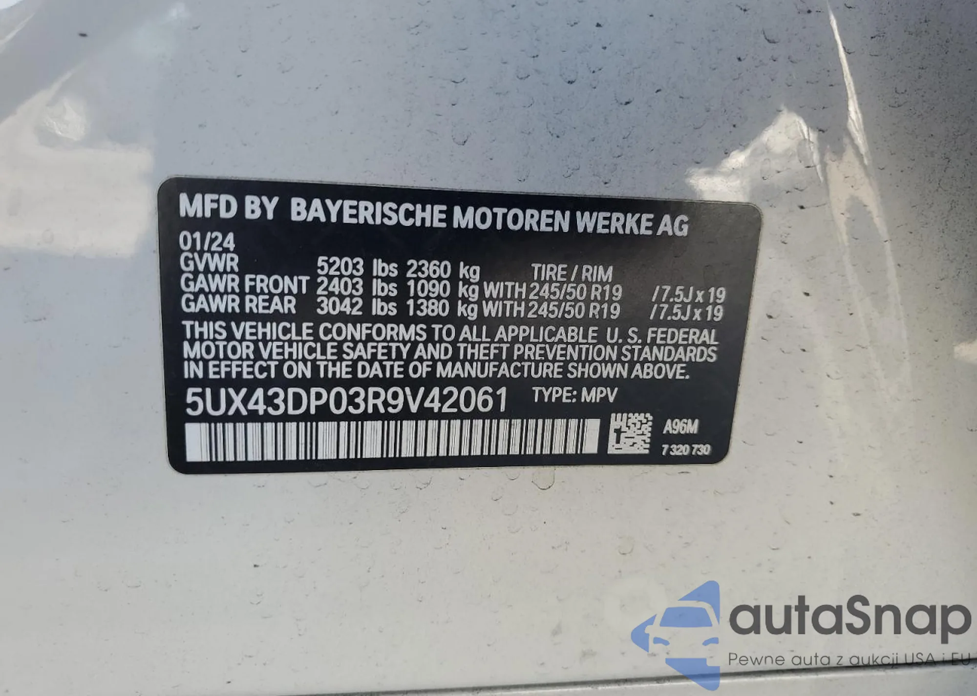 • VIN 5UX43DP03R9V42061
