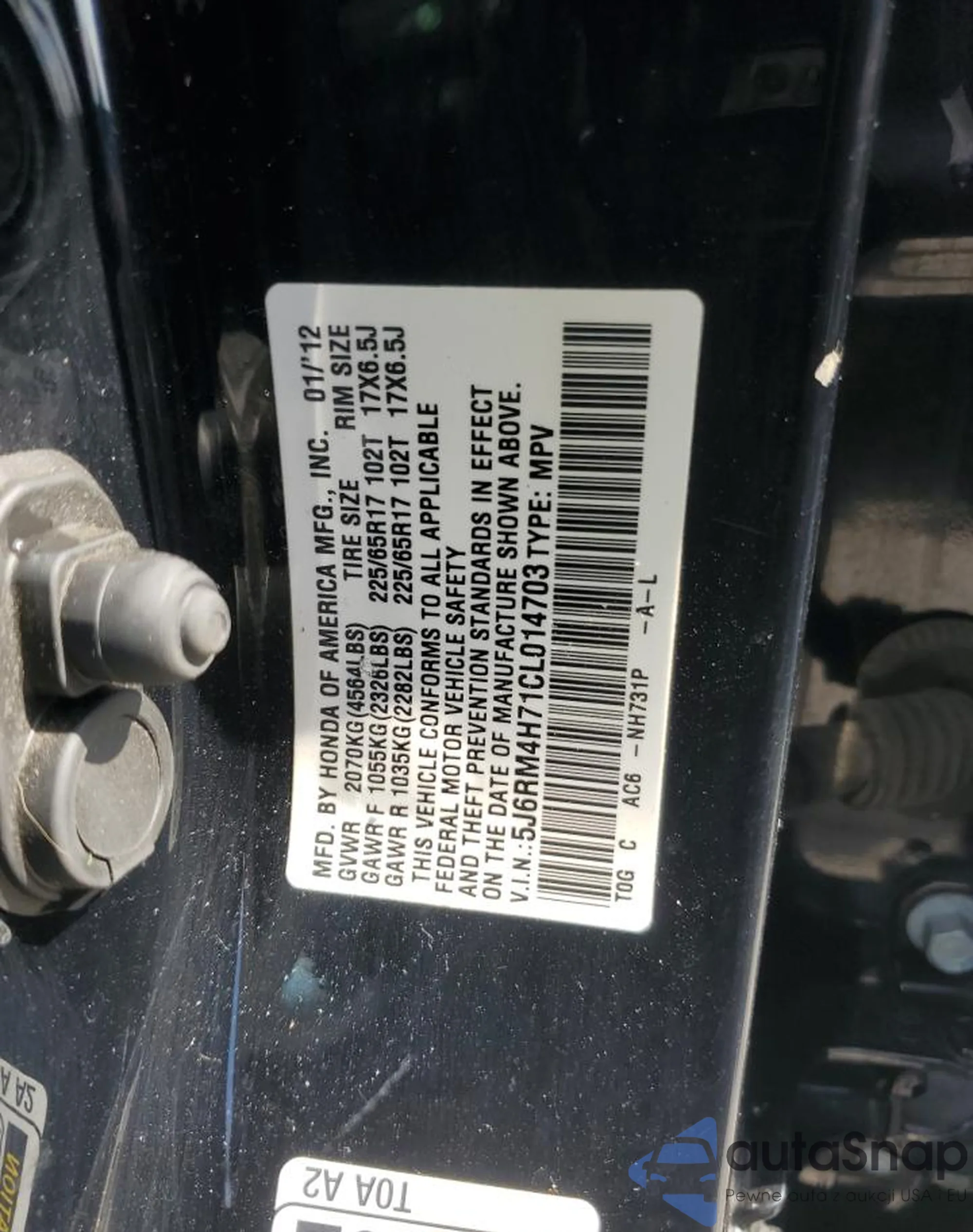 • VIN 5J6RM4H71CL014703