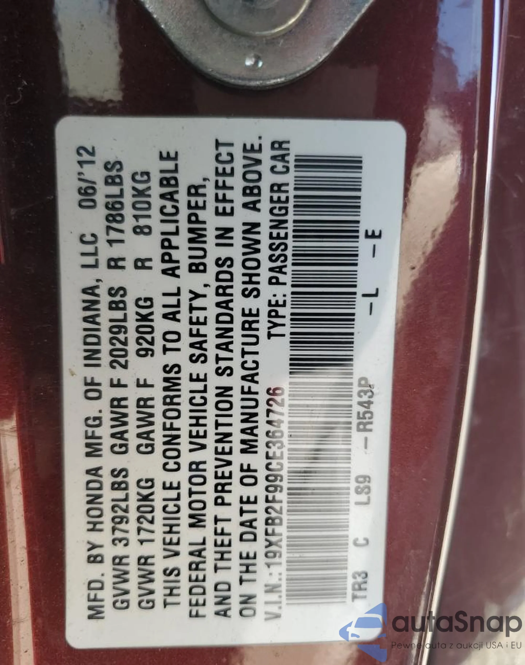 • VIN 19XFB2F99CE364726
