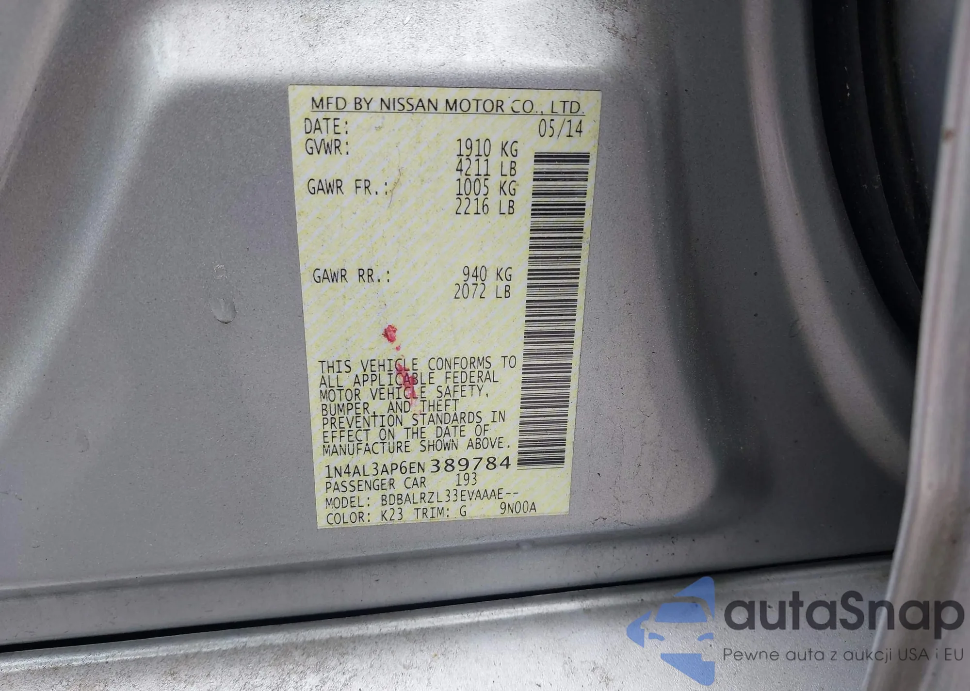 LOT: 42298381 VIN: 1N4AL3AP6EN389784