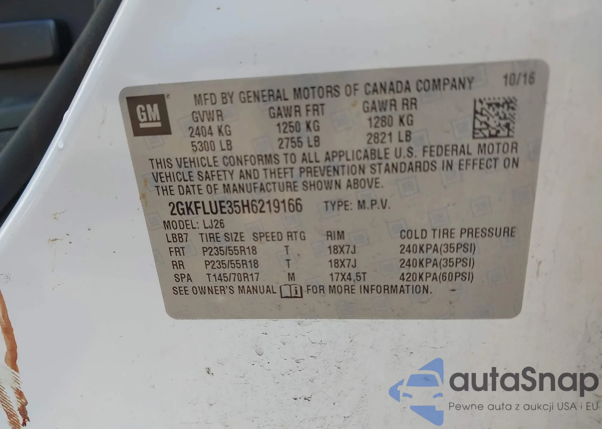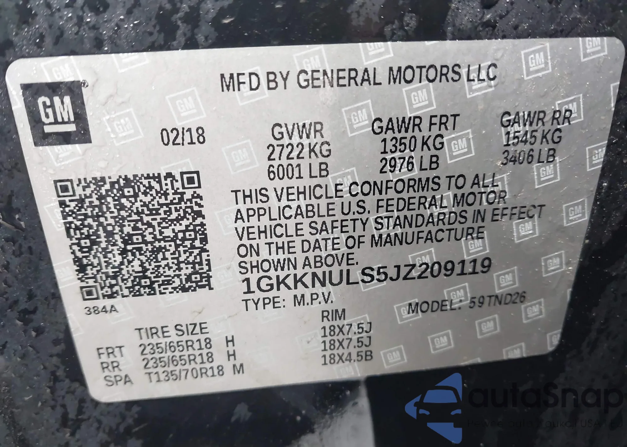 LOT: 42318096 VIN: 1GKKNULS5JZ209119