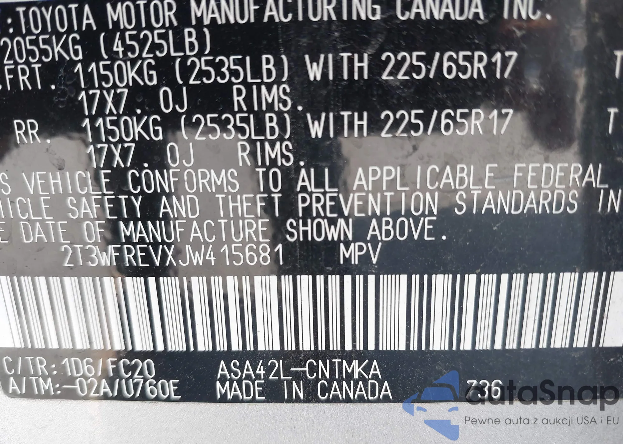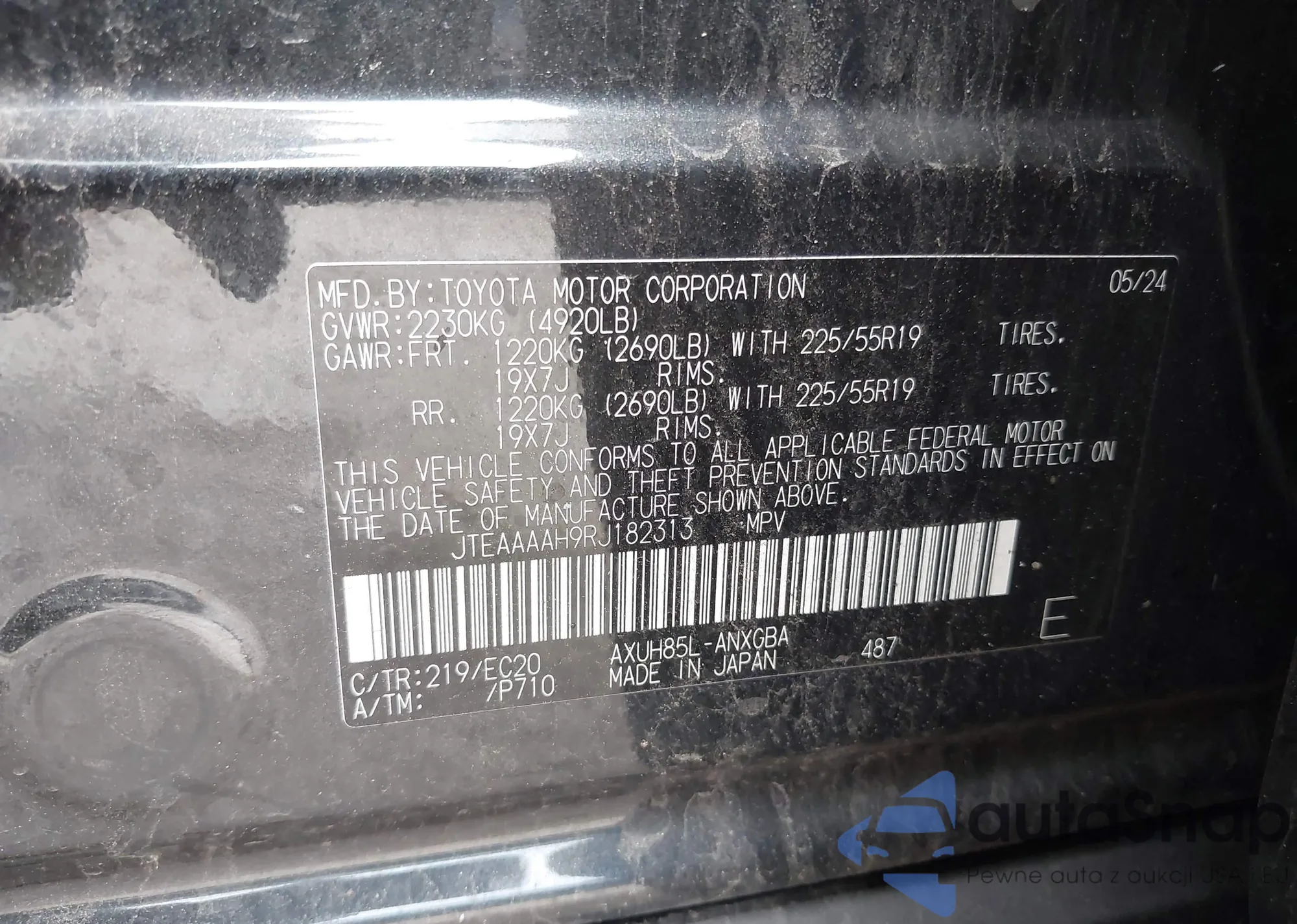 • VIN JTEAAAAH9RJ182313