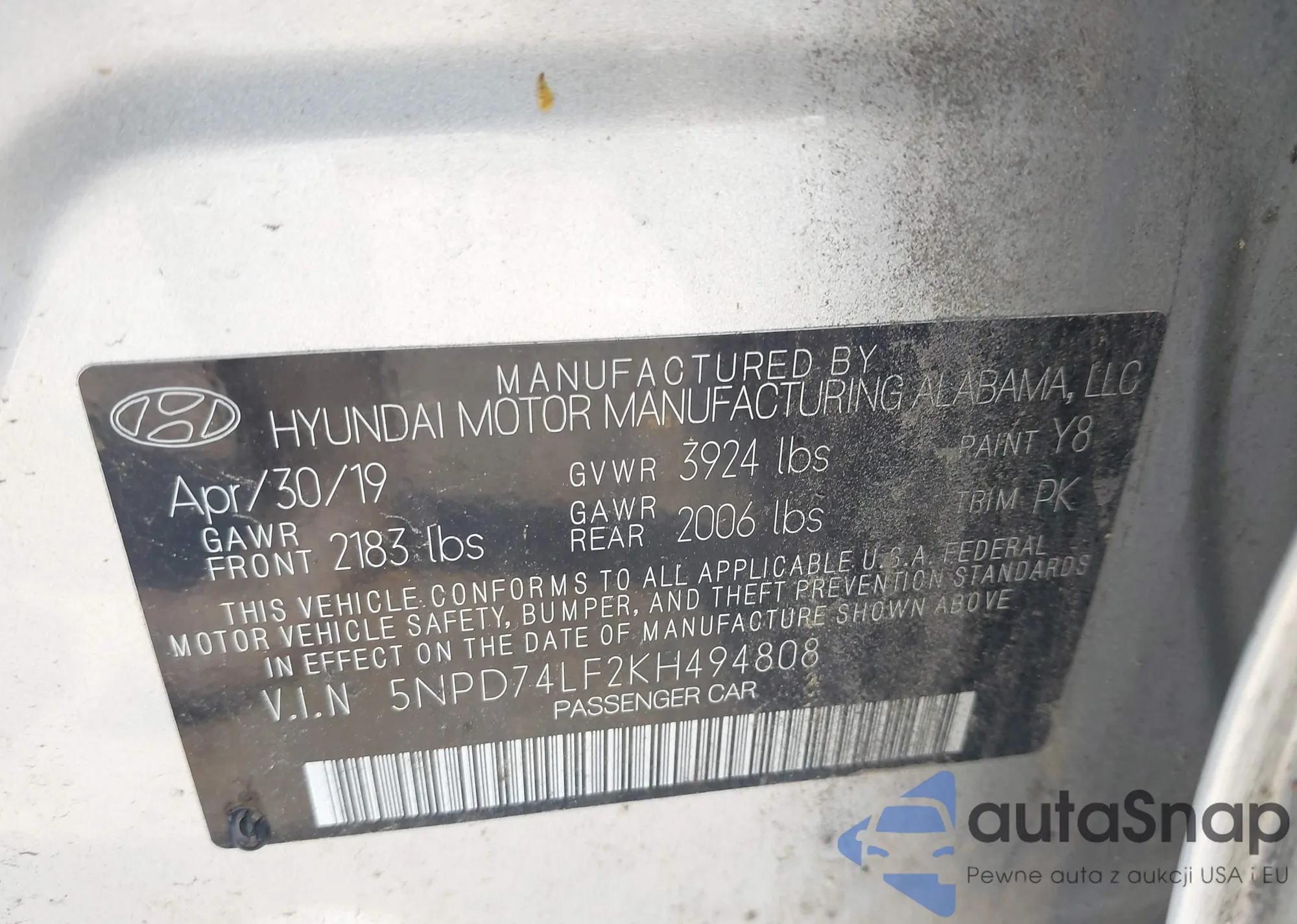 • VIN 5NPD84LF1HH115819