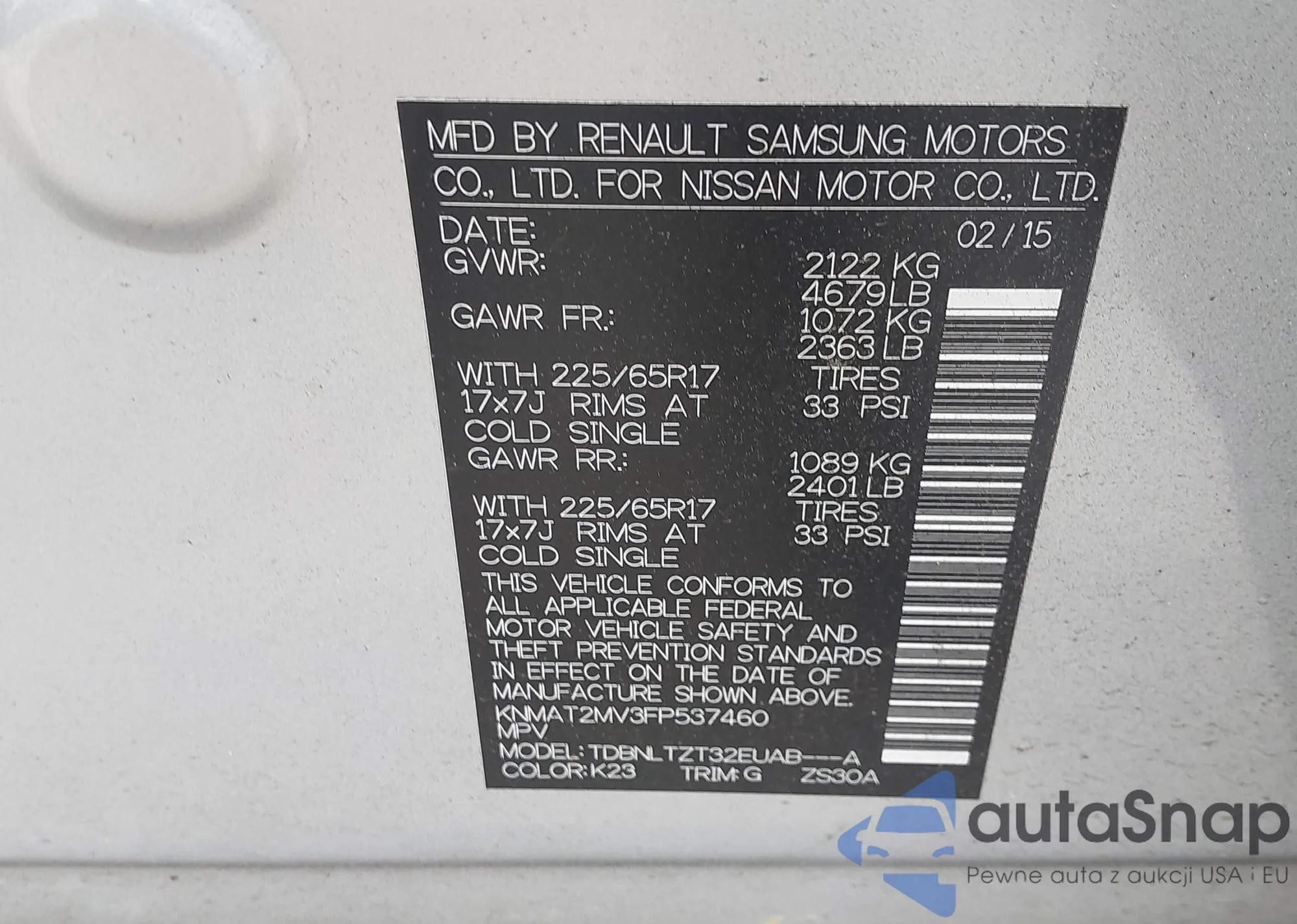 LOT: 42648157 VIN: JN8AT3BB2MW203863