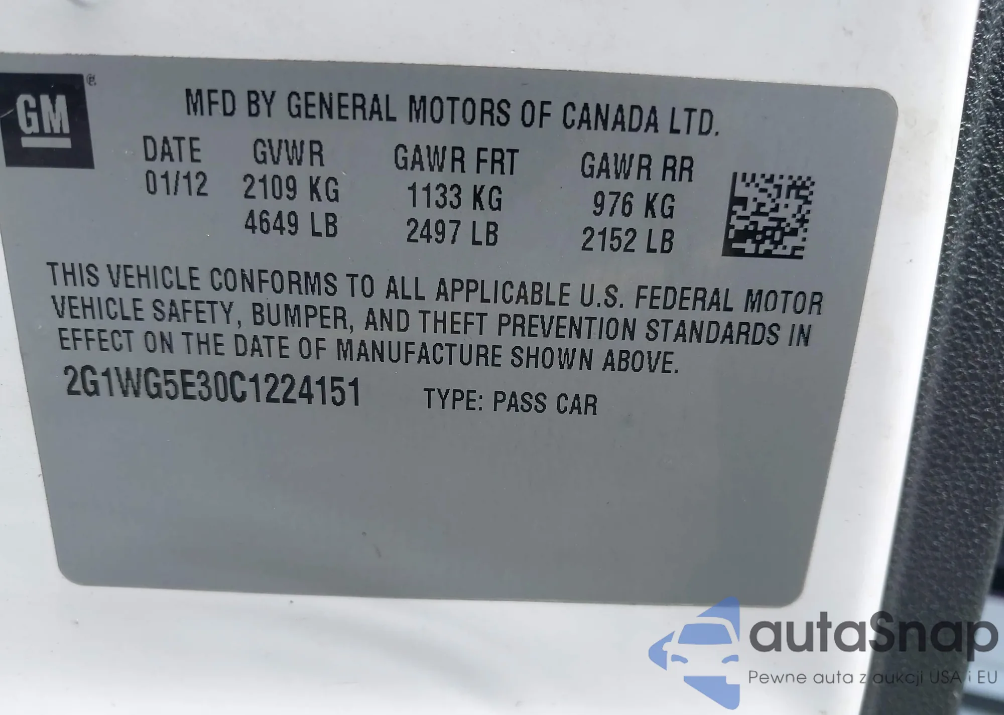 • VIN 2G1WG5E30C1224151