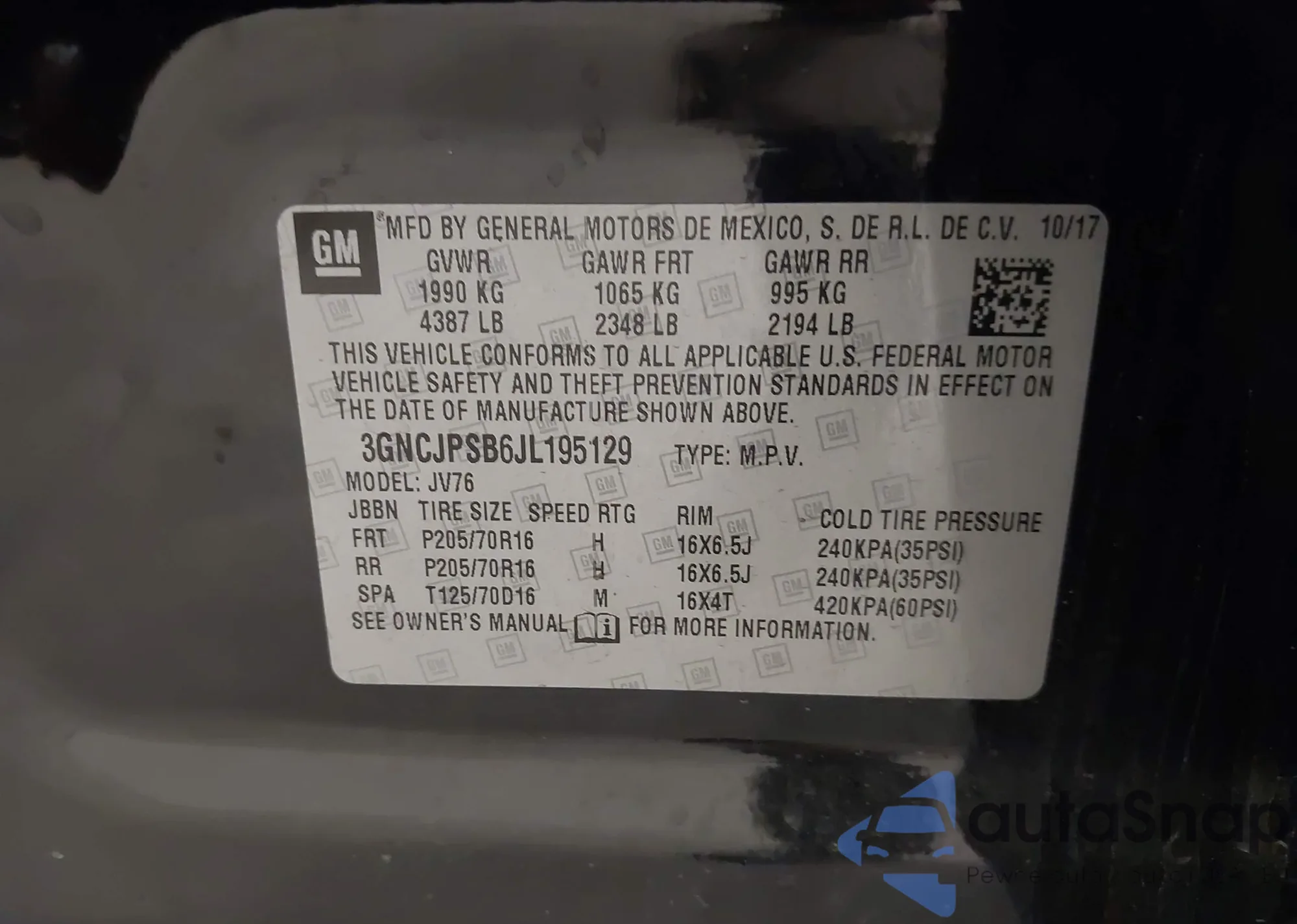 • VIN 3GNCJPSB6JL195129