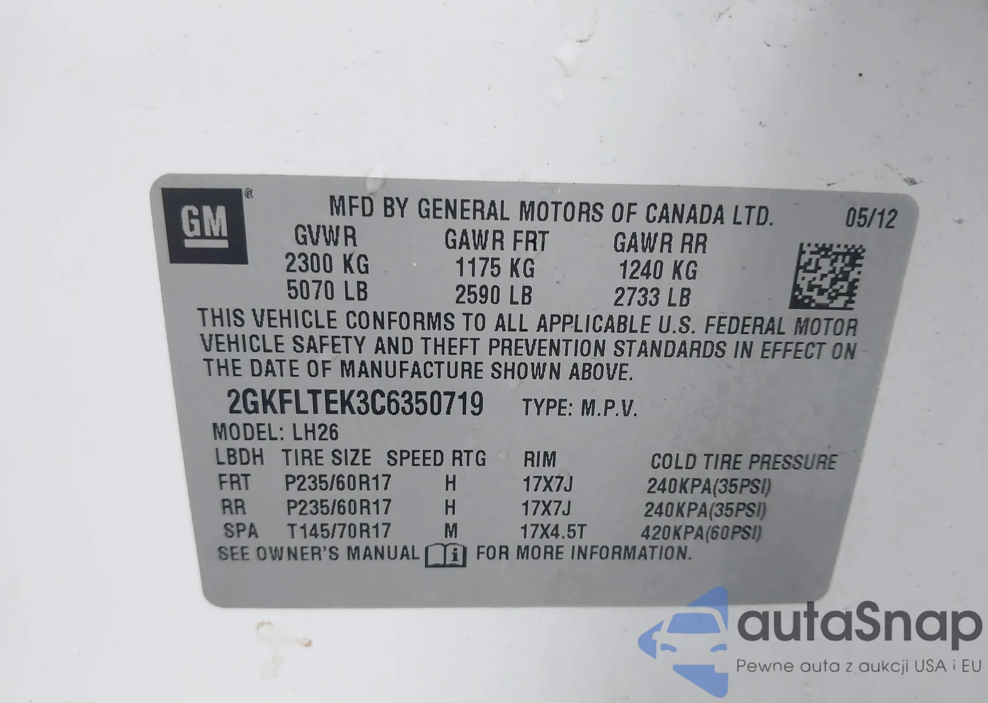 • VIN 2GKALSEK0F6136120