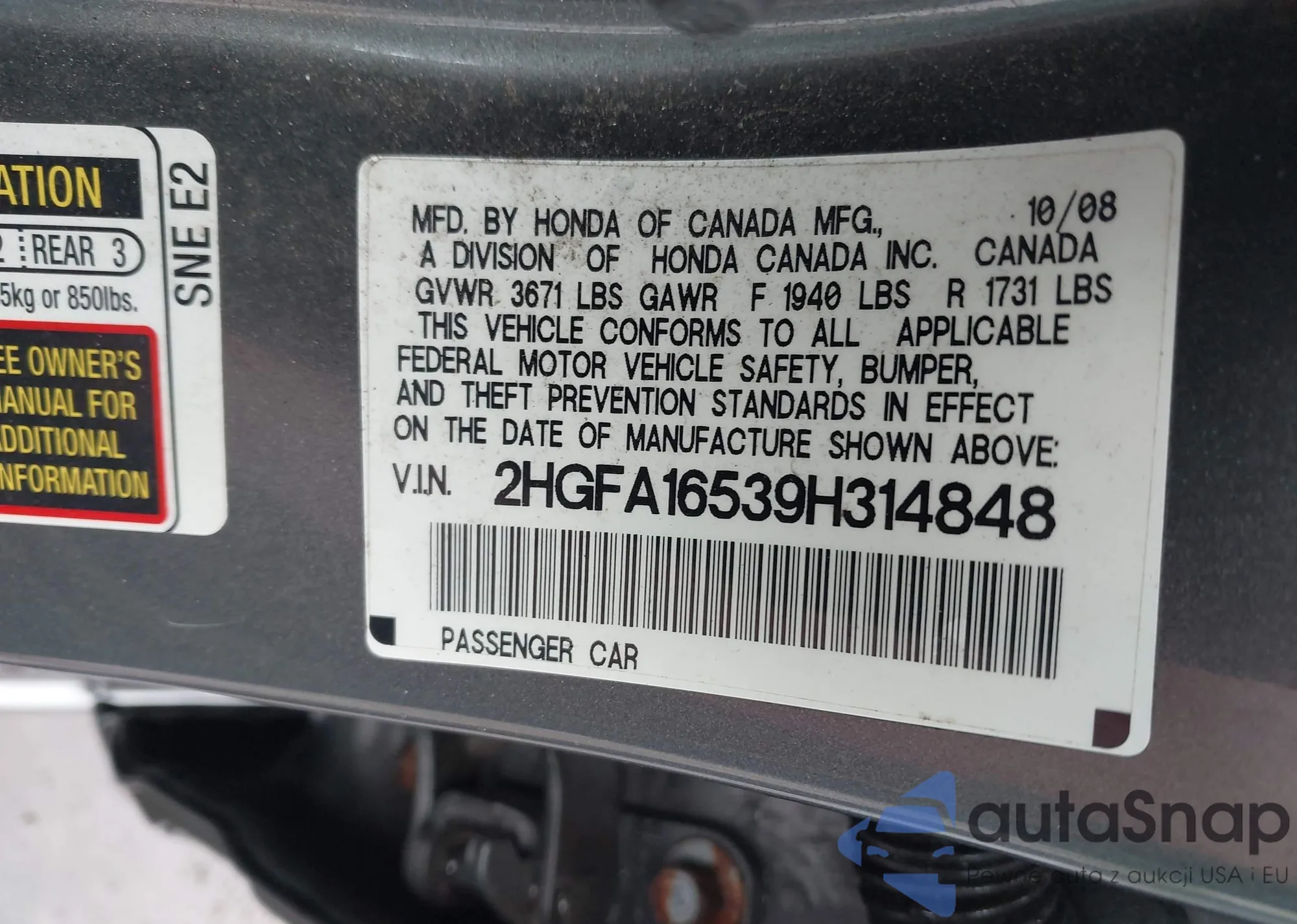 • VIN 2HGFA16539H314848