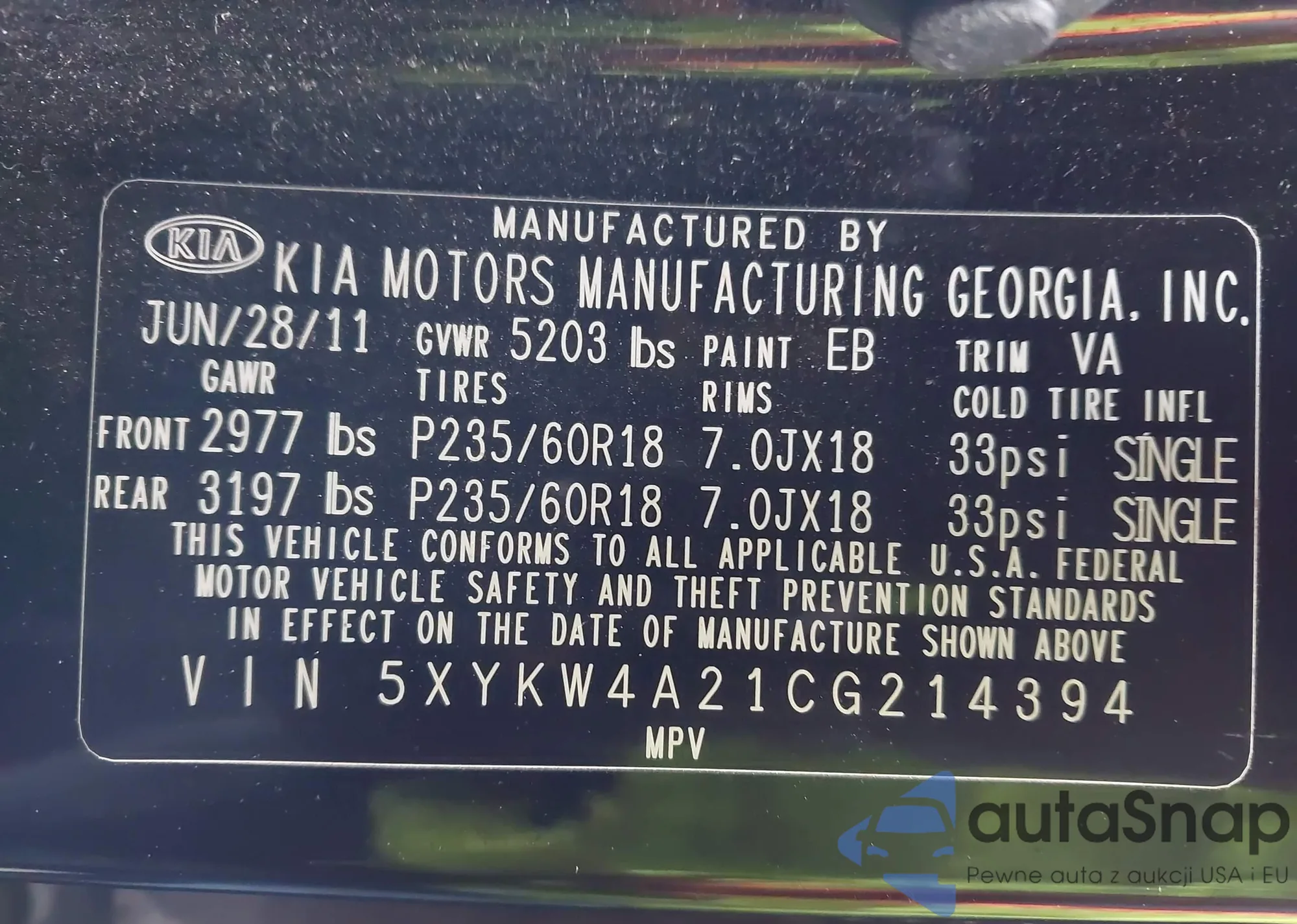 • VIN 5XYKW4A21CG214394