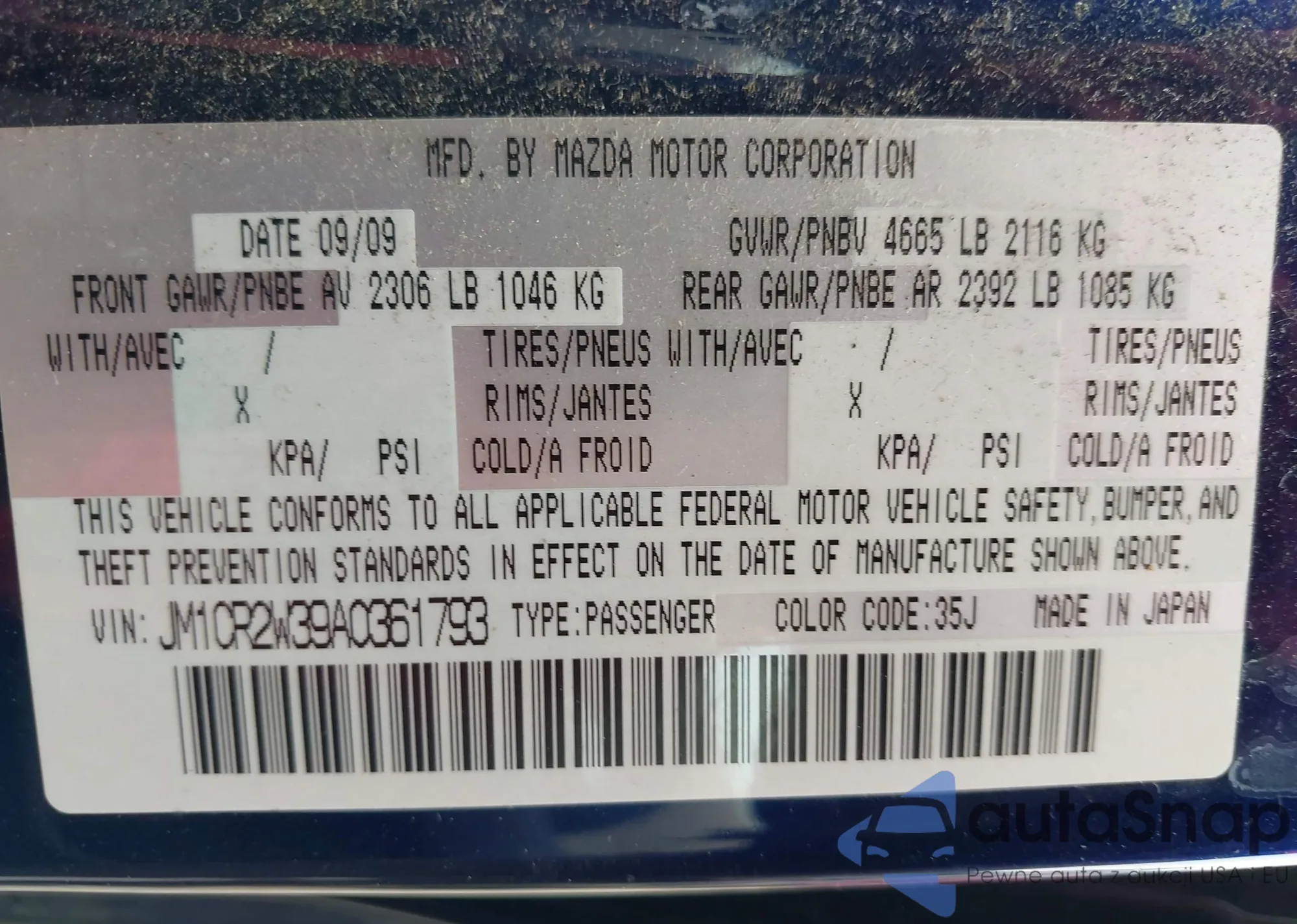 LOT: 42907441 VIN: JM1CR2W39A0361793