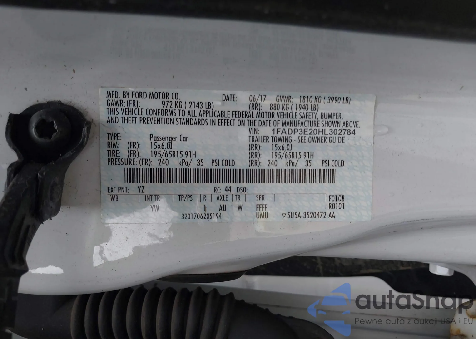 • VIN 1FADP3E20HL302784