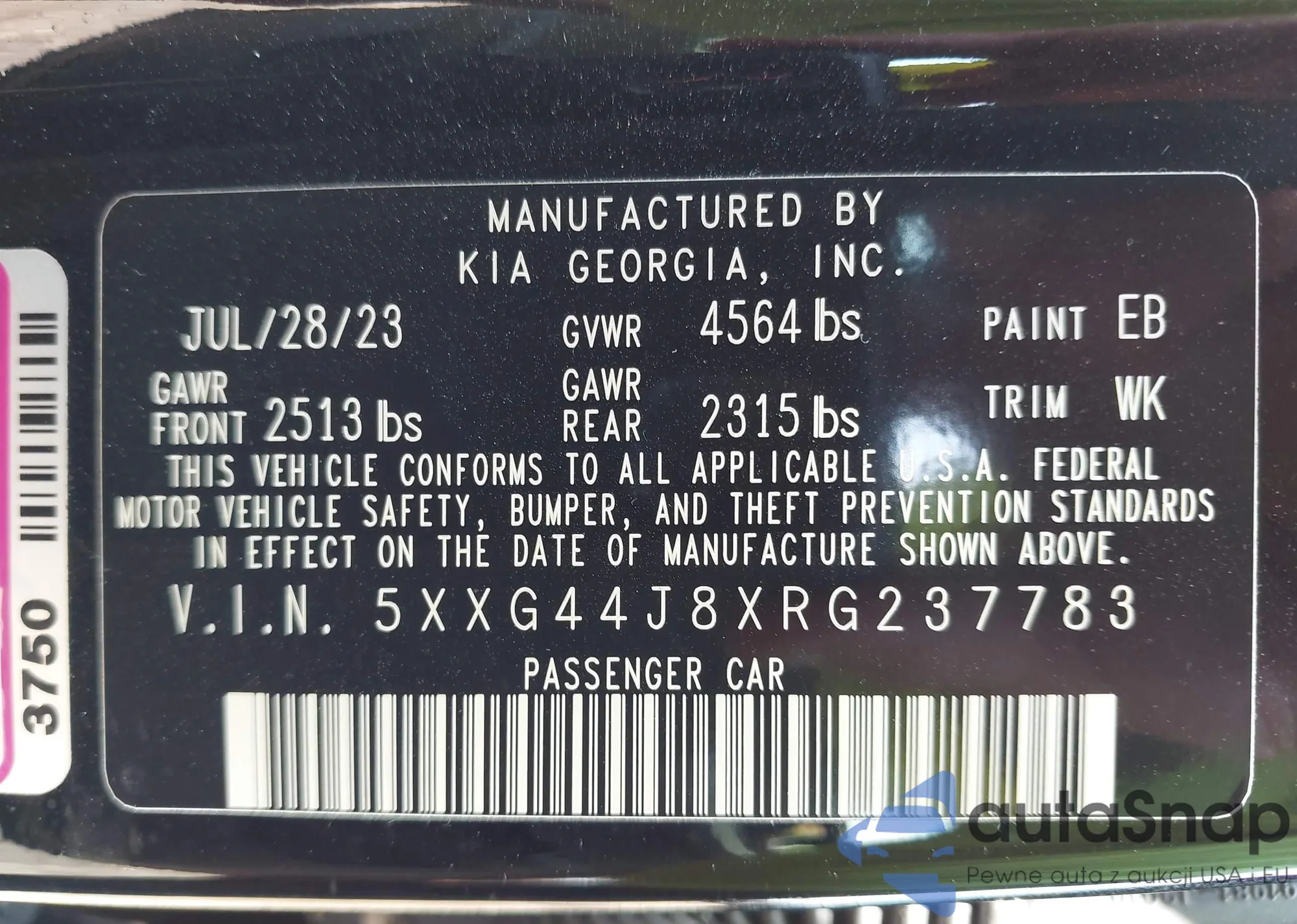 • VIN 5XXG44J8XRG237783