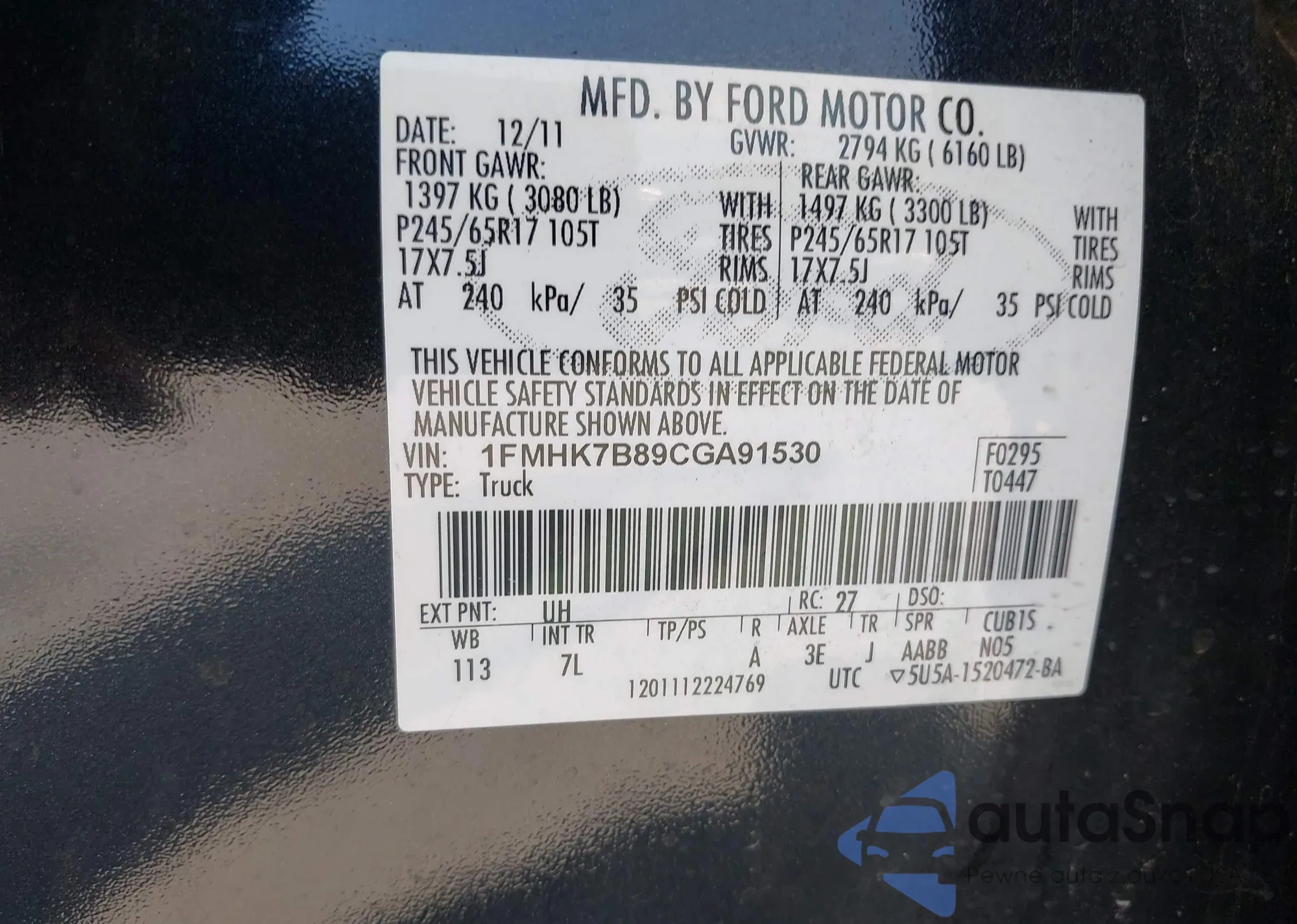 LOT: 40950231 VIN: 5XYKW4A21CG214394