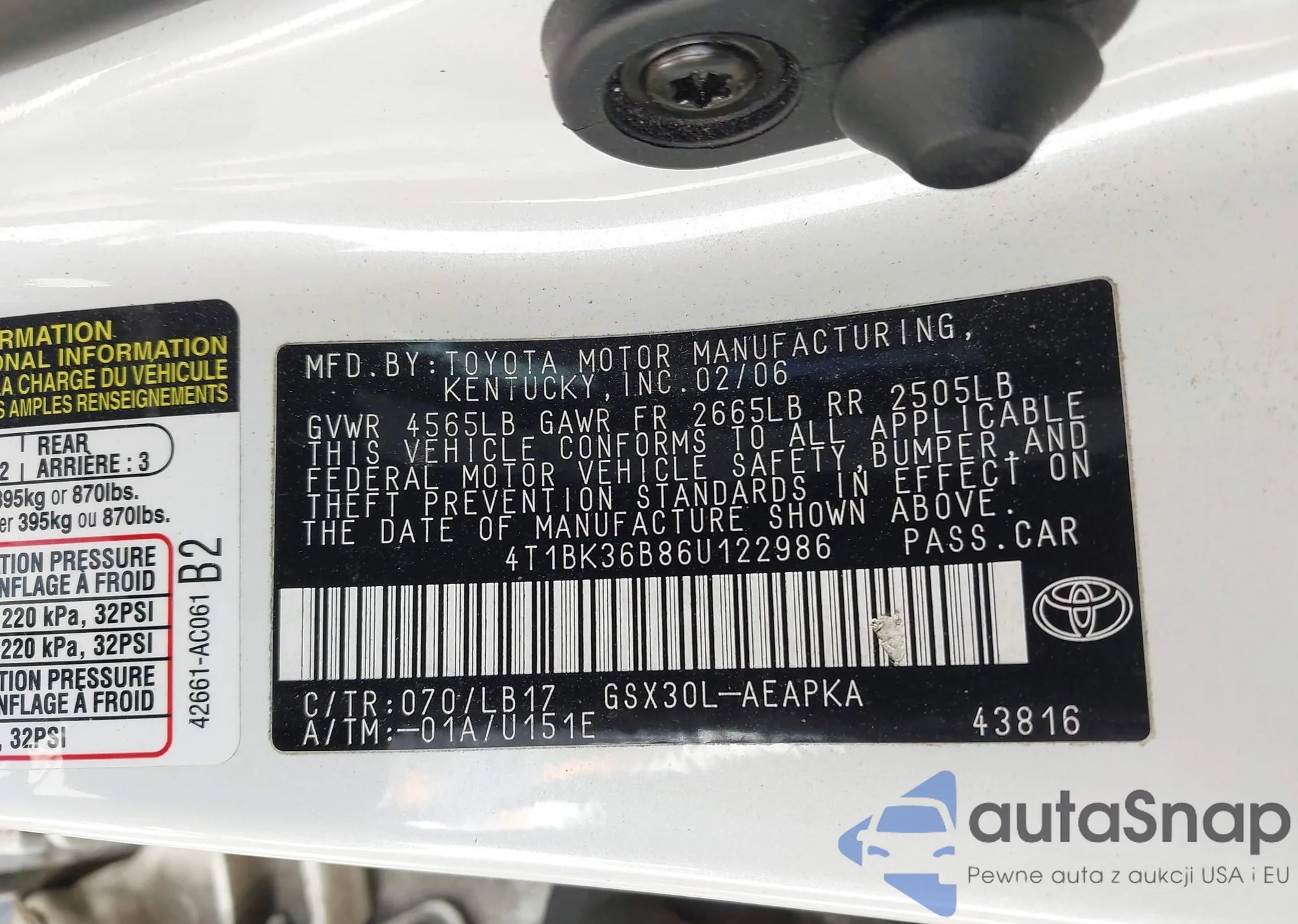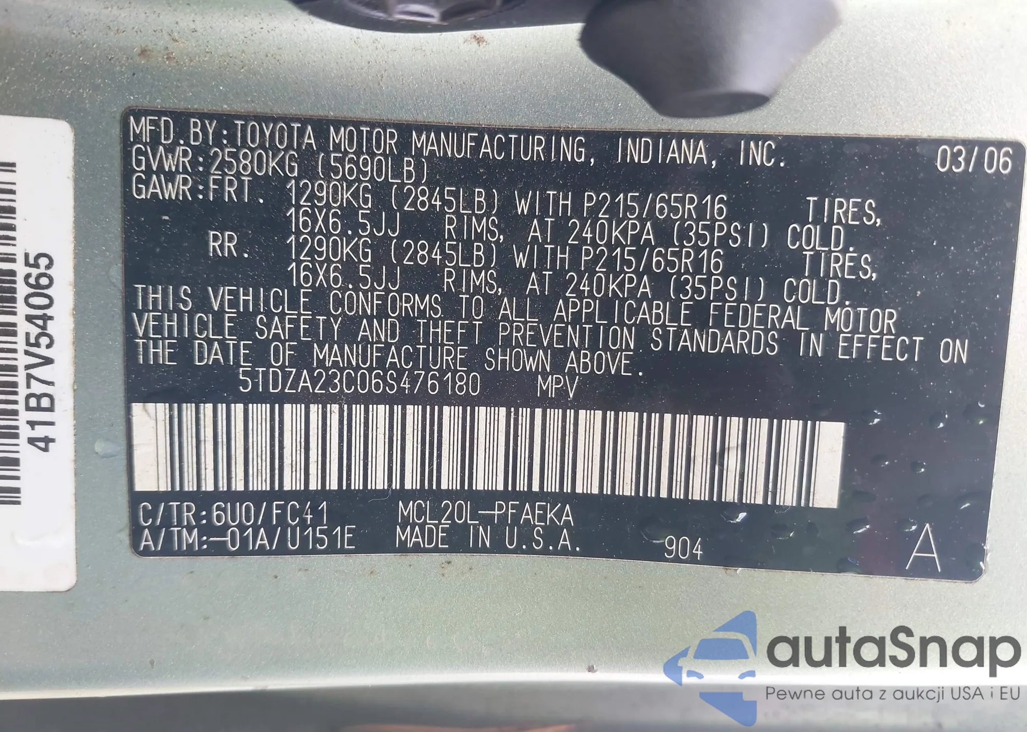 LOT: 42991762 VIN: 5TDZA23C06S476180