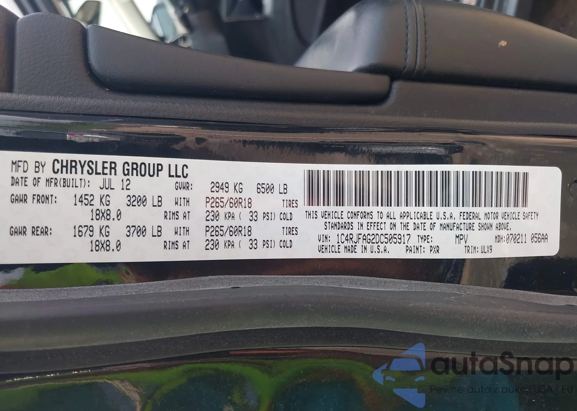 • VIN 1C4RJFAG2DC505917