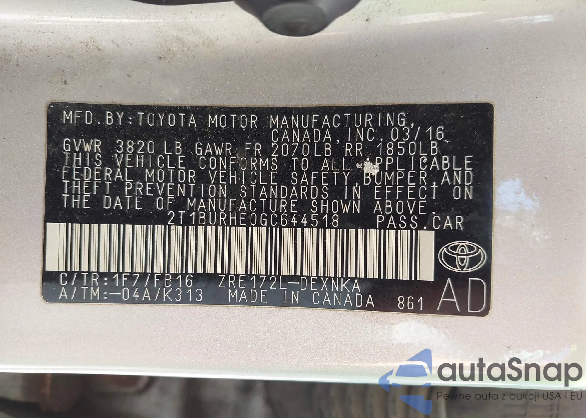 • VIN 2T1BURHE0GC644518