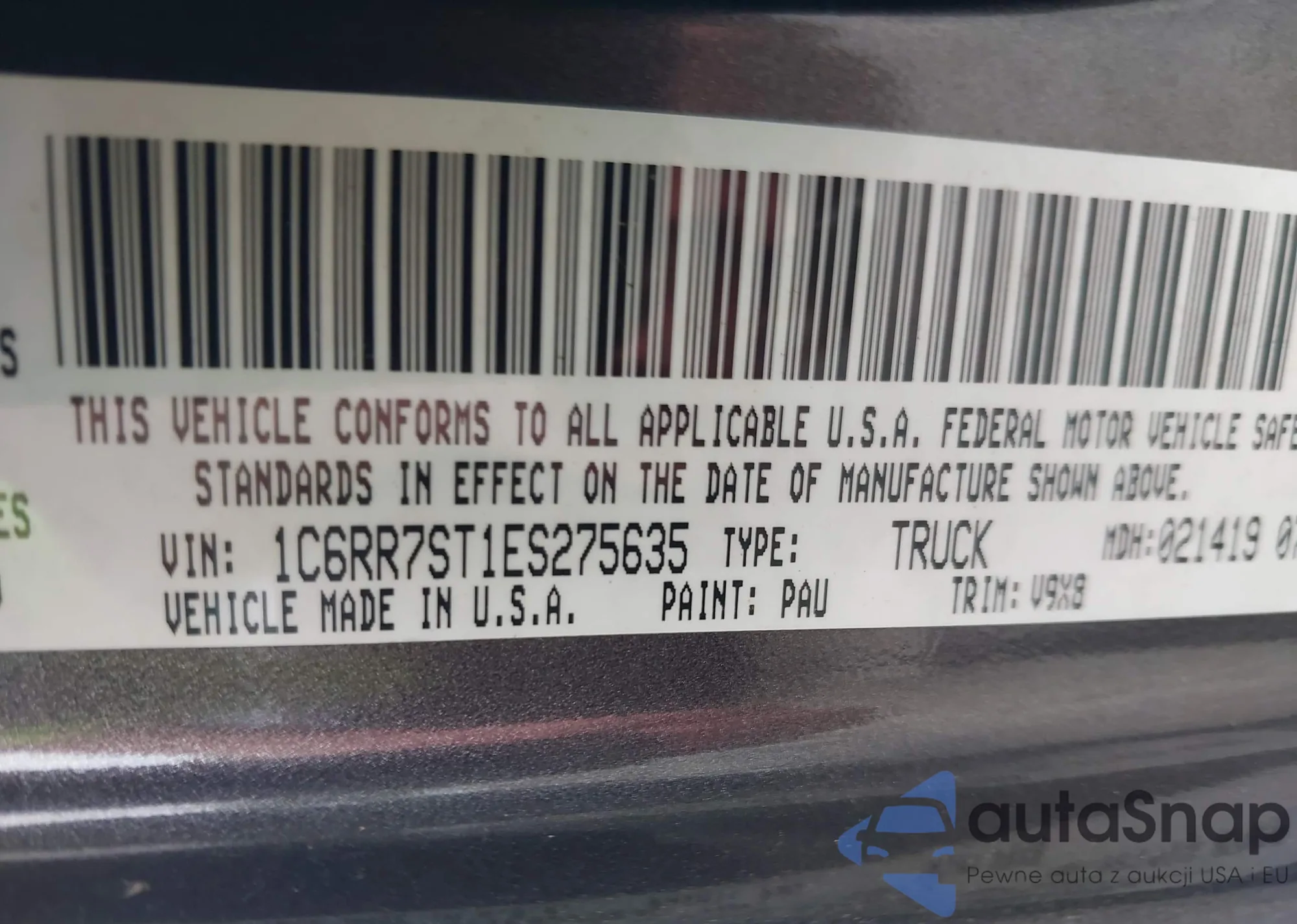 • VIN 1C6RR7ST1ES275635