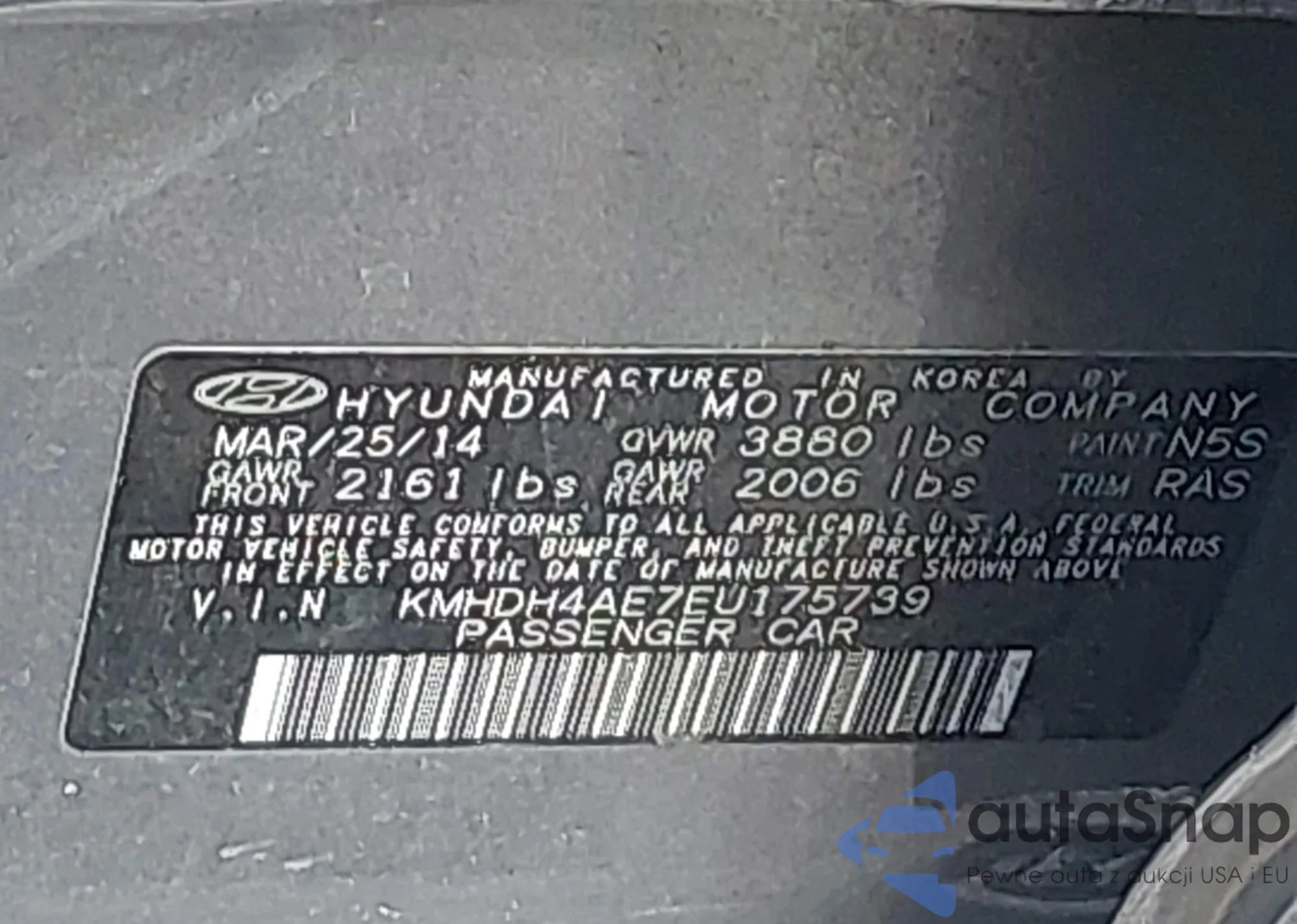 LOT: 42540046 VIN: KMHDH4AE7EU175739