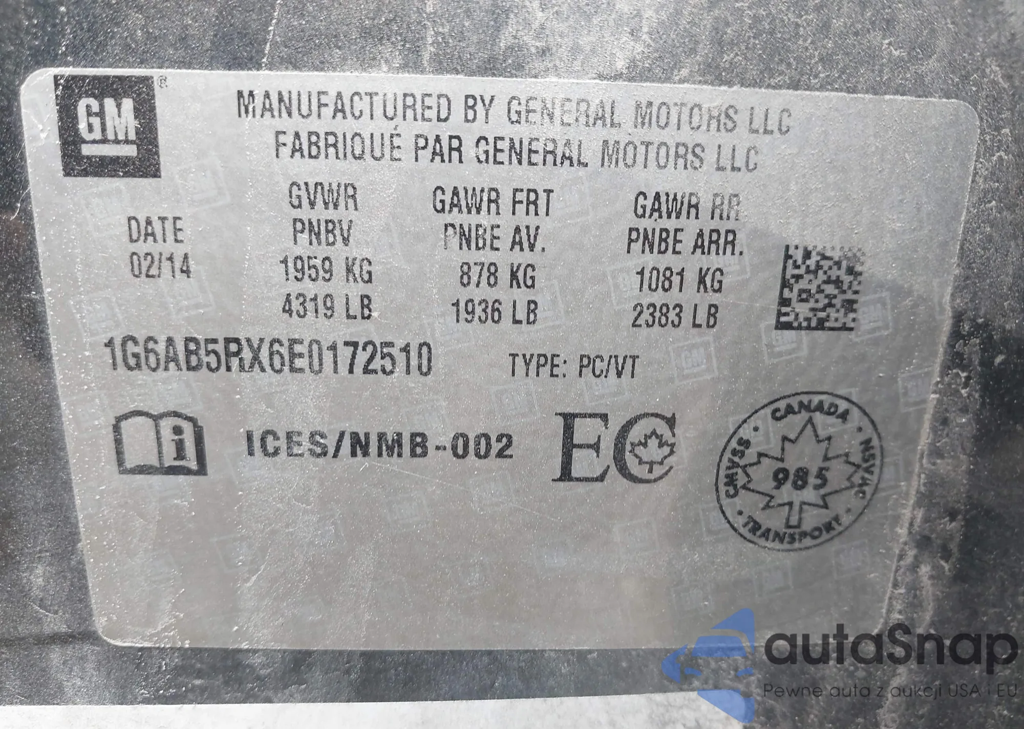 • VIN 1G6AB5RX6E0172510