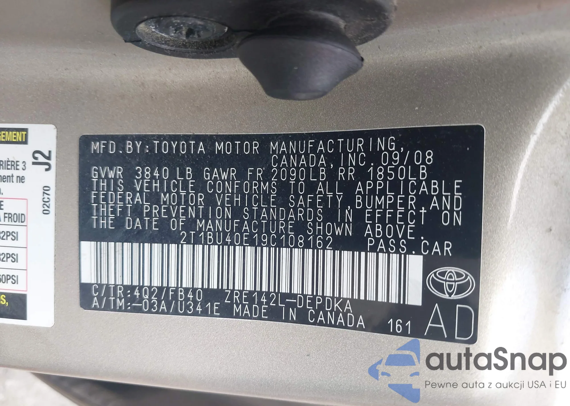 LOT: 42696229 VIN: 2T1BU40E19C108162