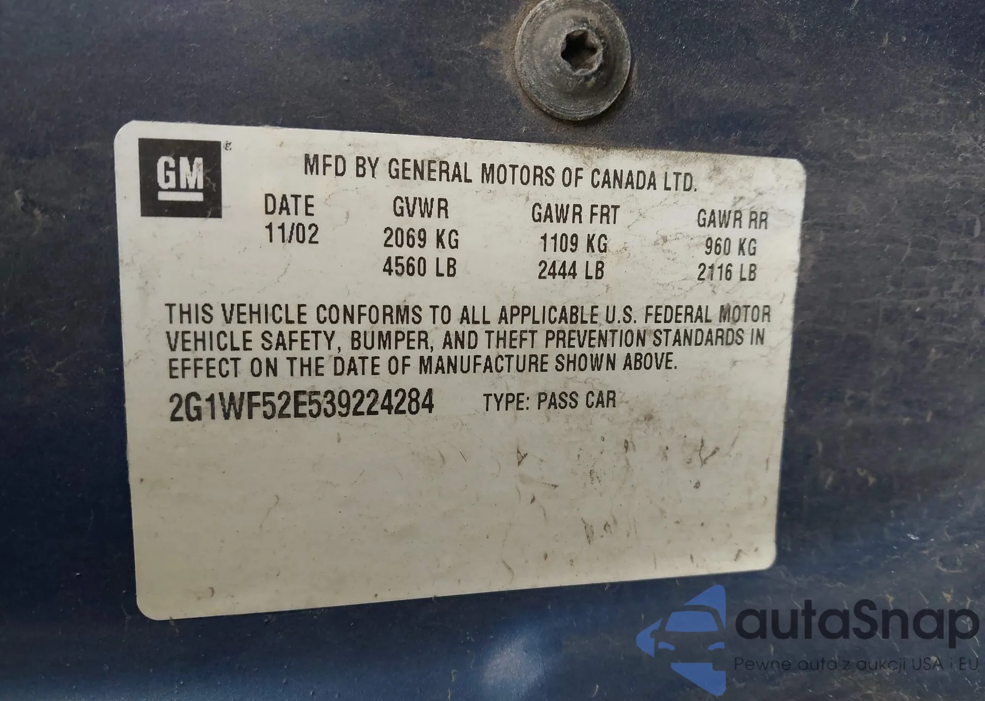 LOT: 43030921 VIN: 3GYFNEE33DS532623