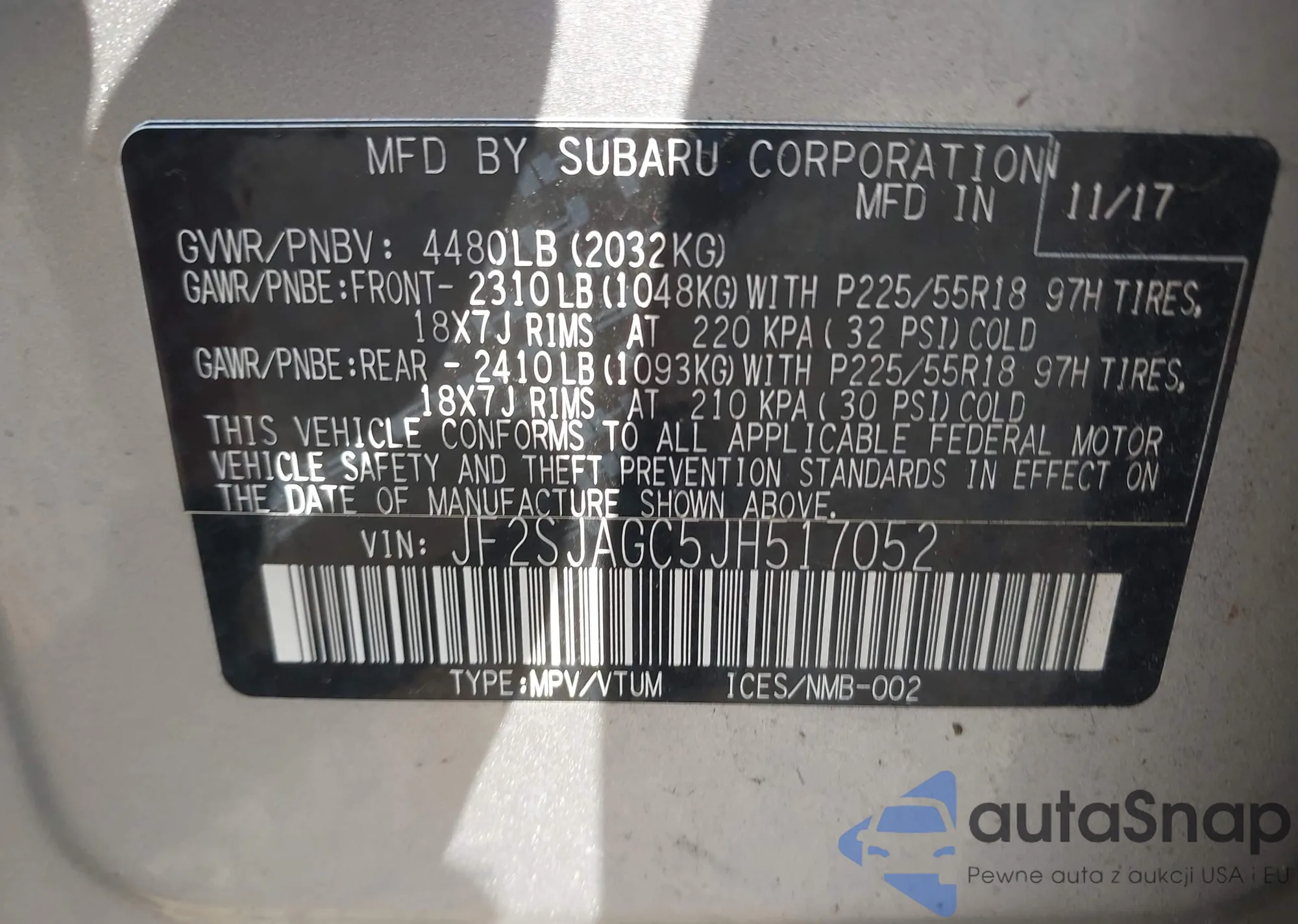 LOT: 42957667 VIN: JS2YB5A33A6301708