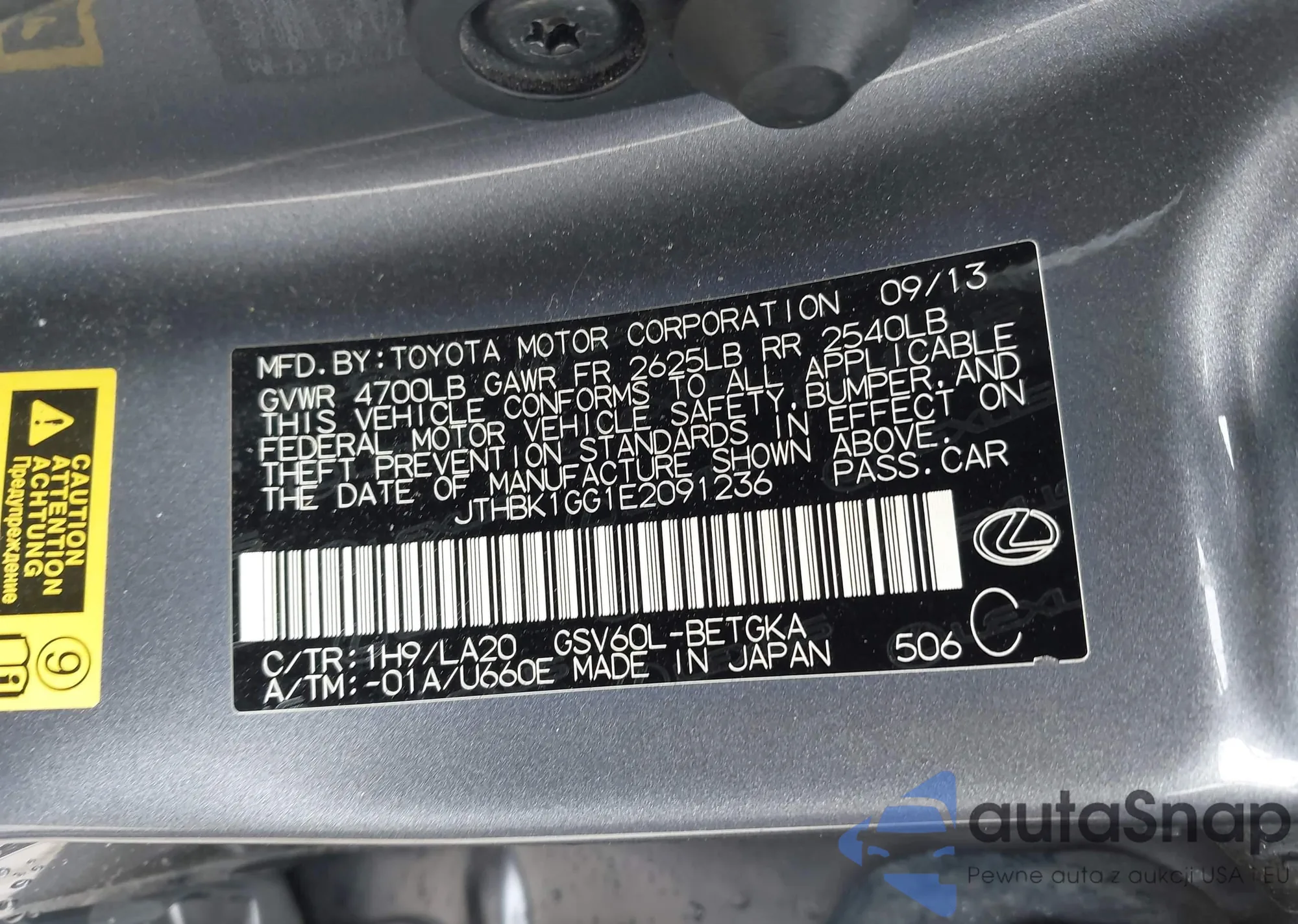 LOT: 42481035 VIN: JTHBK1GG1E2091236