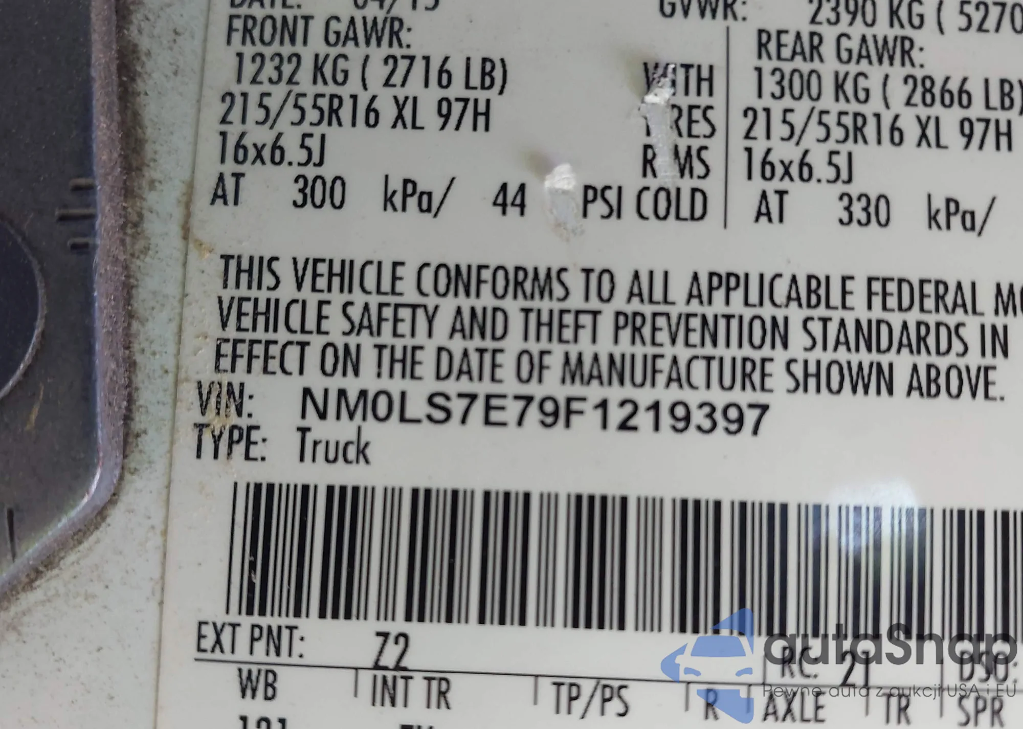 • VIN 3VW5T7AUXFM015082