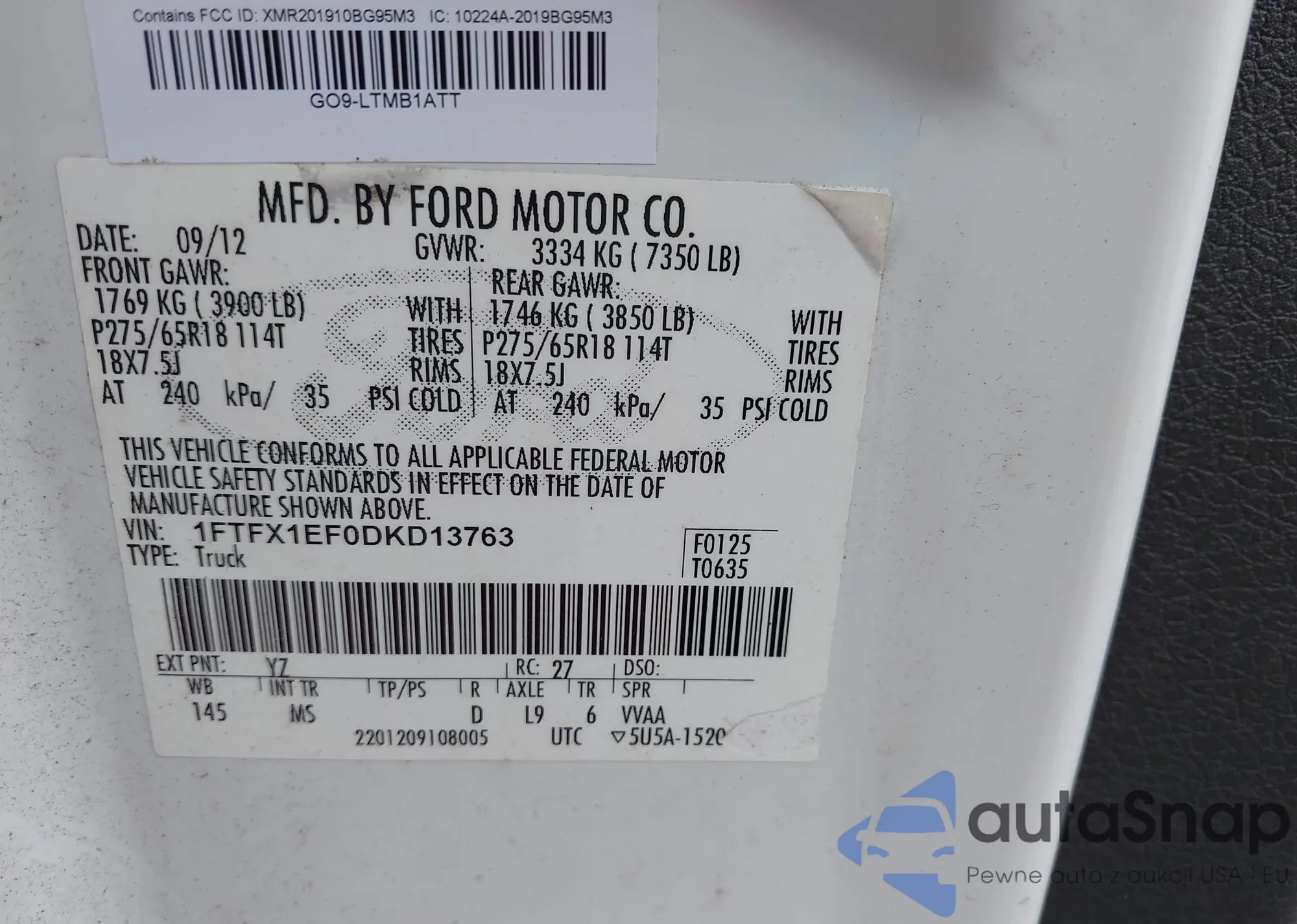 • VIN 1FTFX1EF0DKD13763
