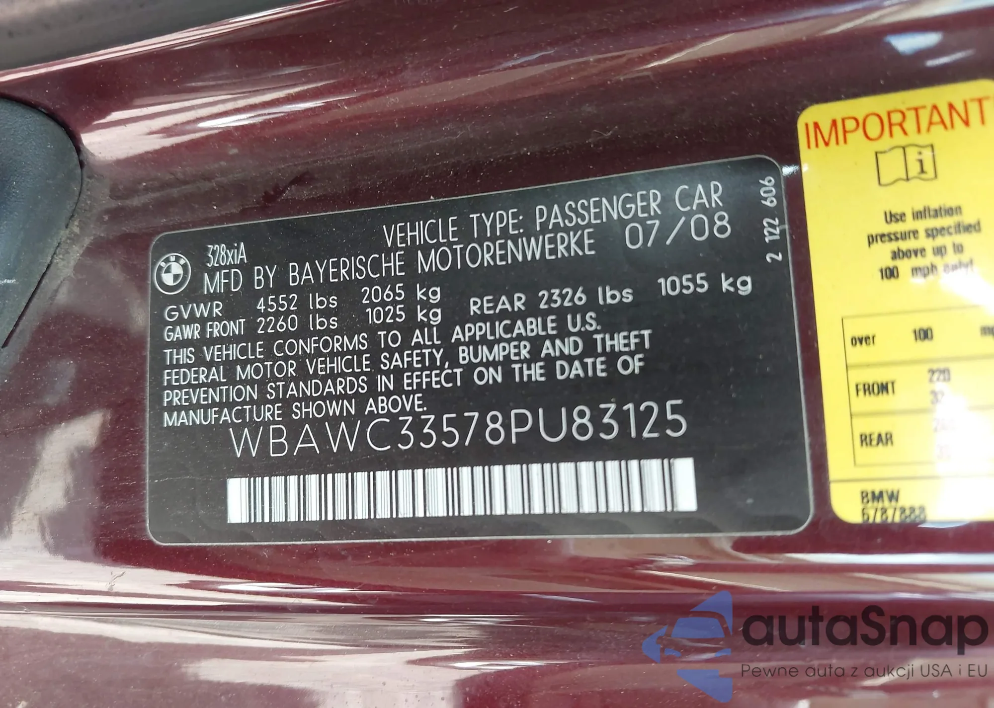 • VIN WBAWC33578PU83125
