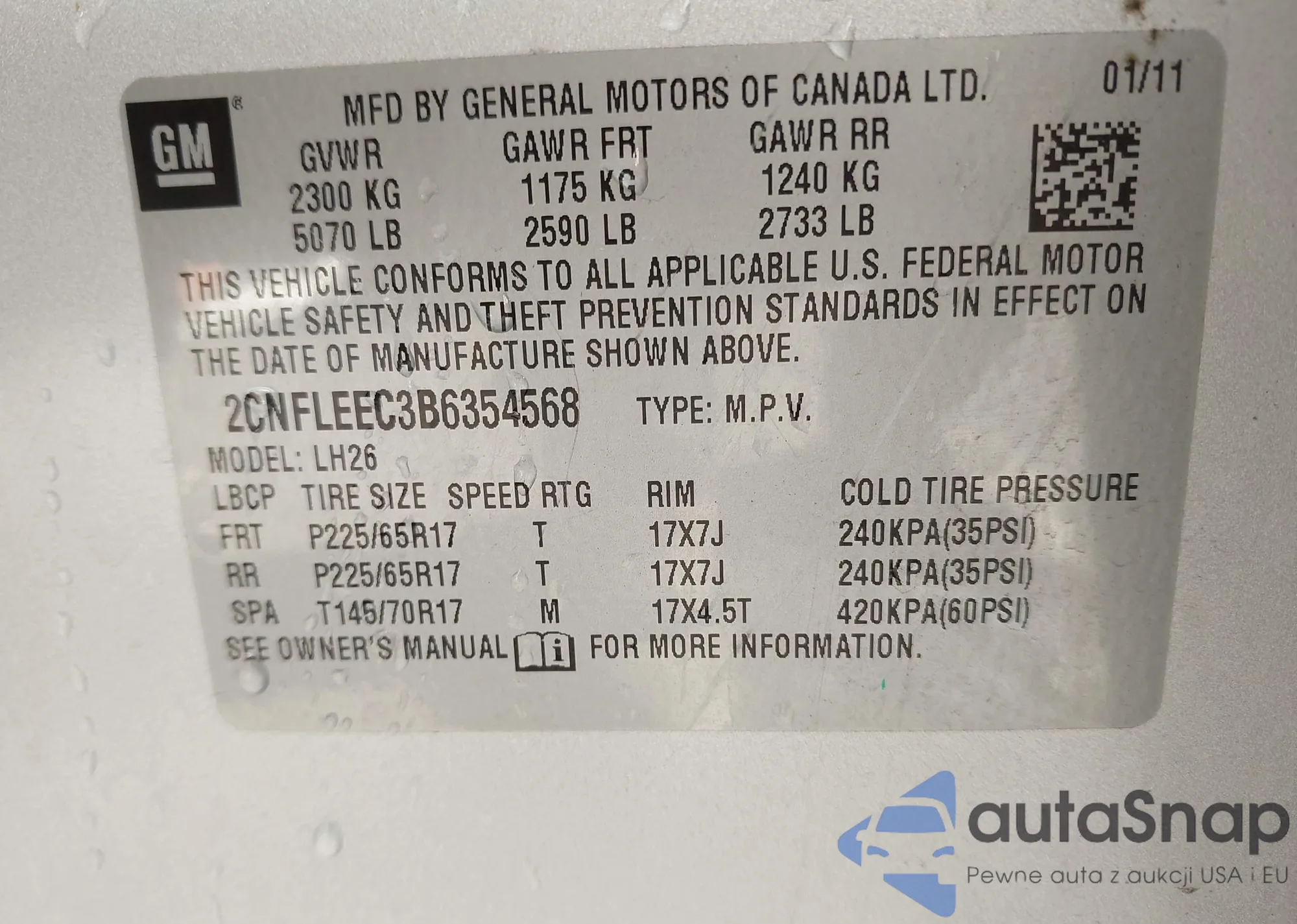 LOT: 43051613 VIN: 2CNFLEEC3B6354568