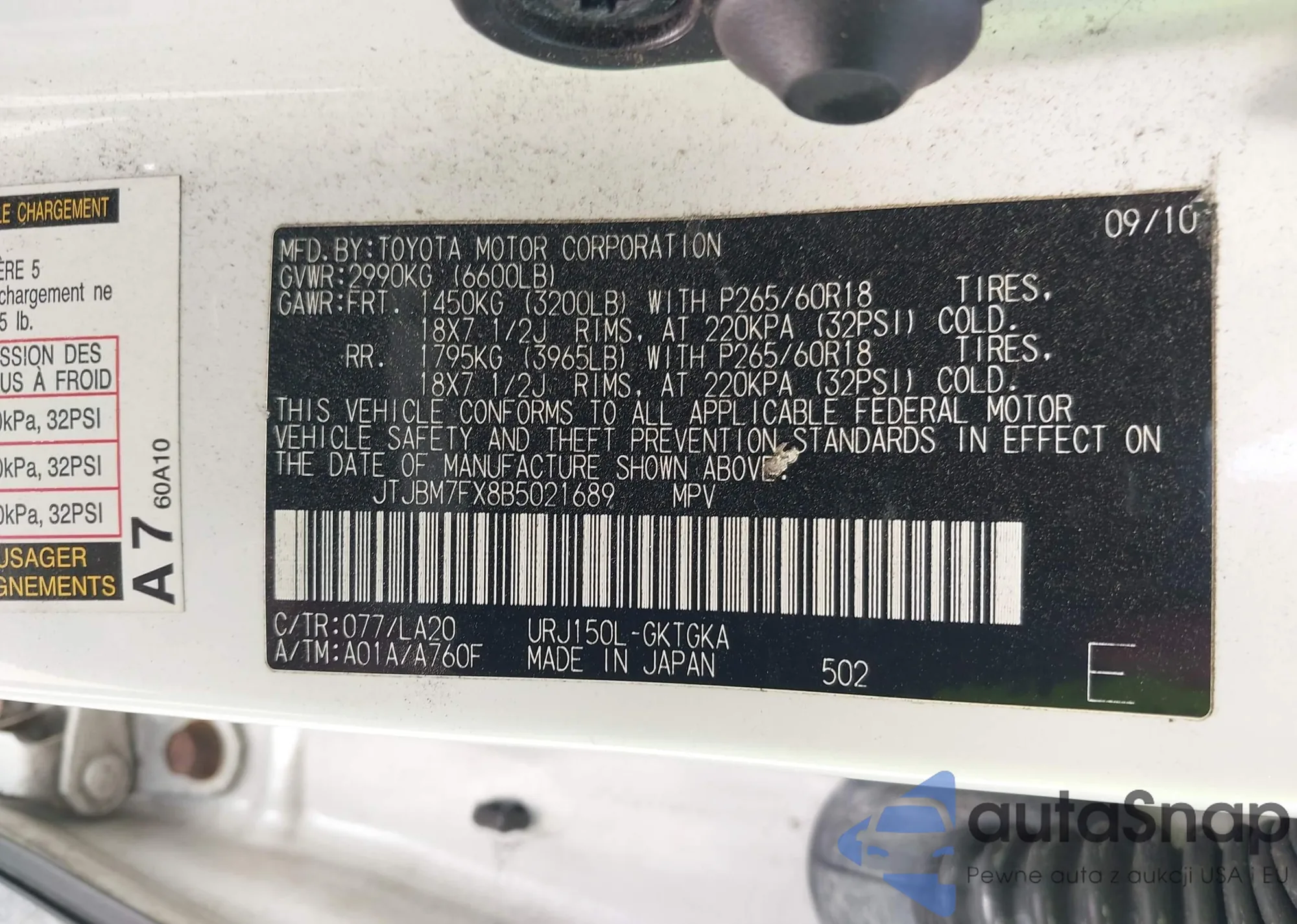 • VIN JTJBM7FX8B5021689